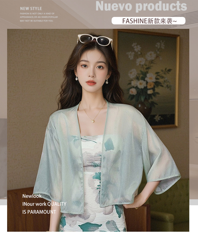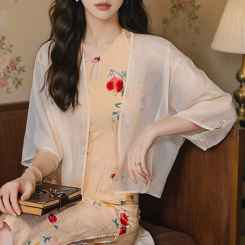 새로운 중국 스타일 국가 스타일 쉬폰 작은 목도리 2025 여름 새로운 태양 보호 카디건 여성의 7부 소매 얇은 겉옷스토어 가기