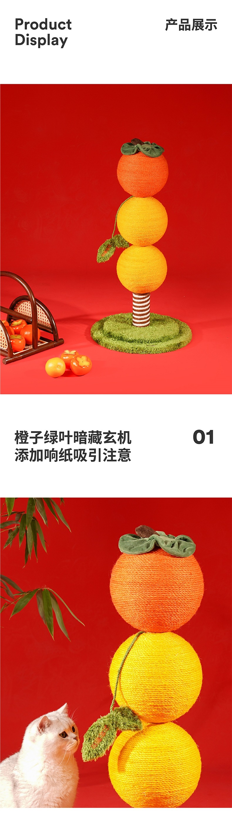 • 좋은 감 오렌지 더블 고양이 긁는 포스트
