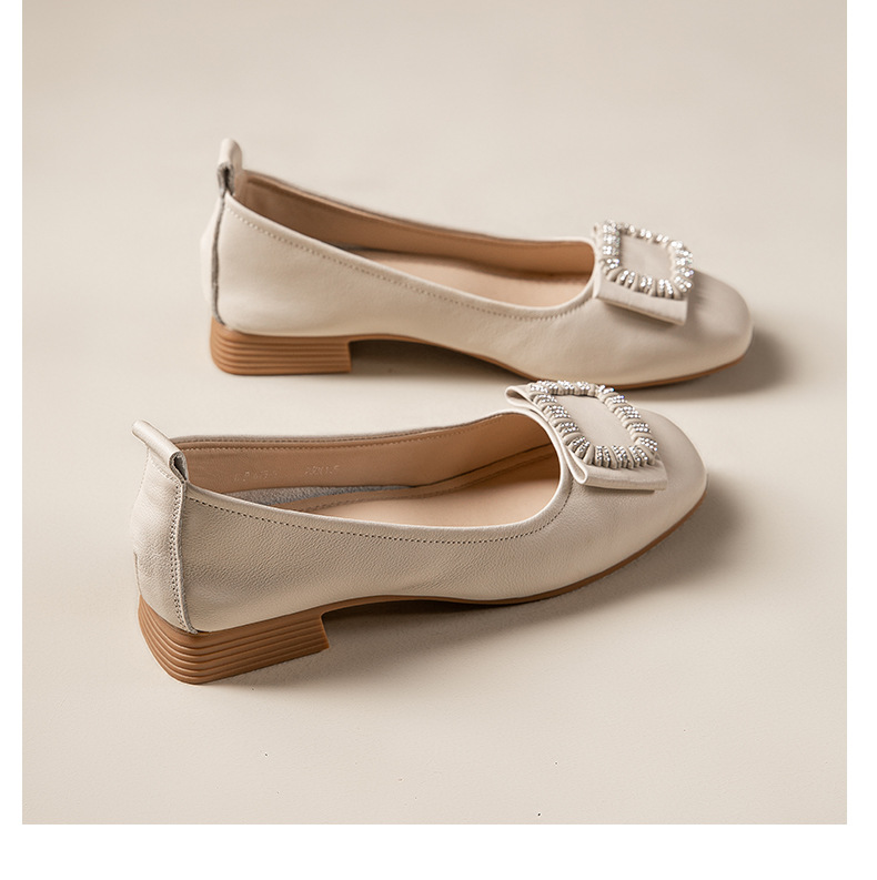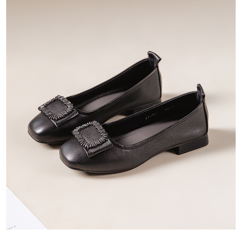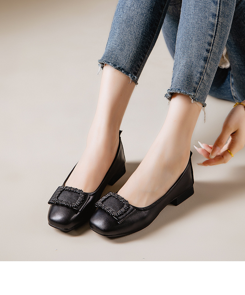 봄과 여름 2025 새로운 정품 가죽 플랫 슈즈 포인팅 얕은 스퀘어 버클 슈즈 패션 사계절 여성 신발스토어 가기