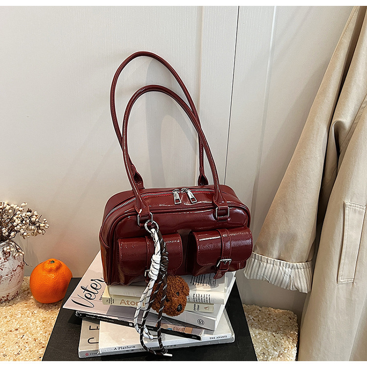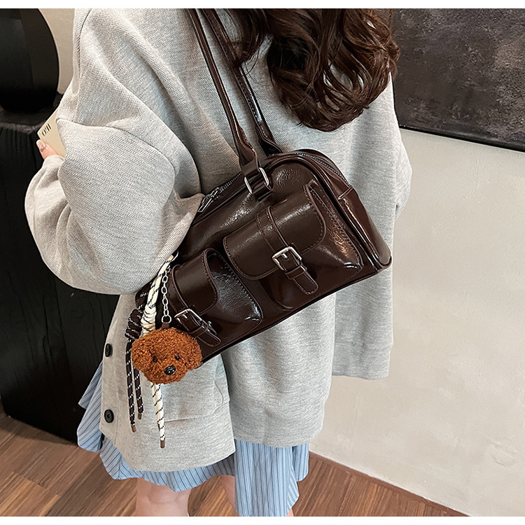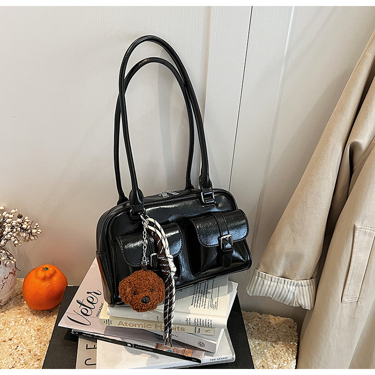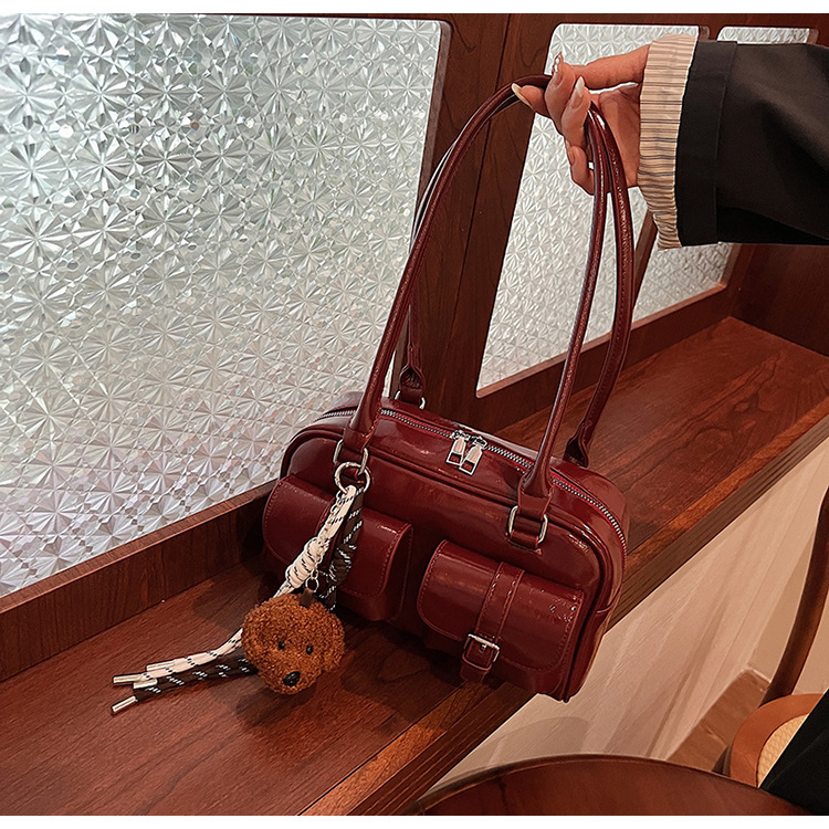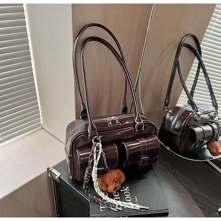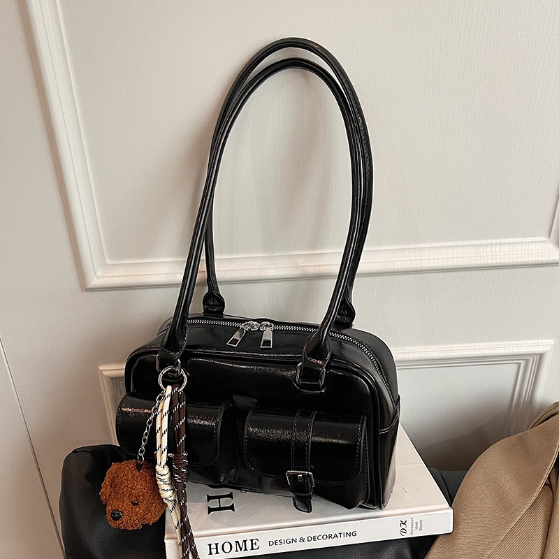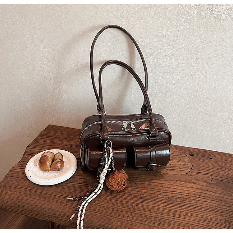 레트로 틈새 볼링 가방 멀티 포켓 어깨 겨드랑이 가방 여성 대용량 통근 핸드 휴대용 보스턴 베개 가방