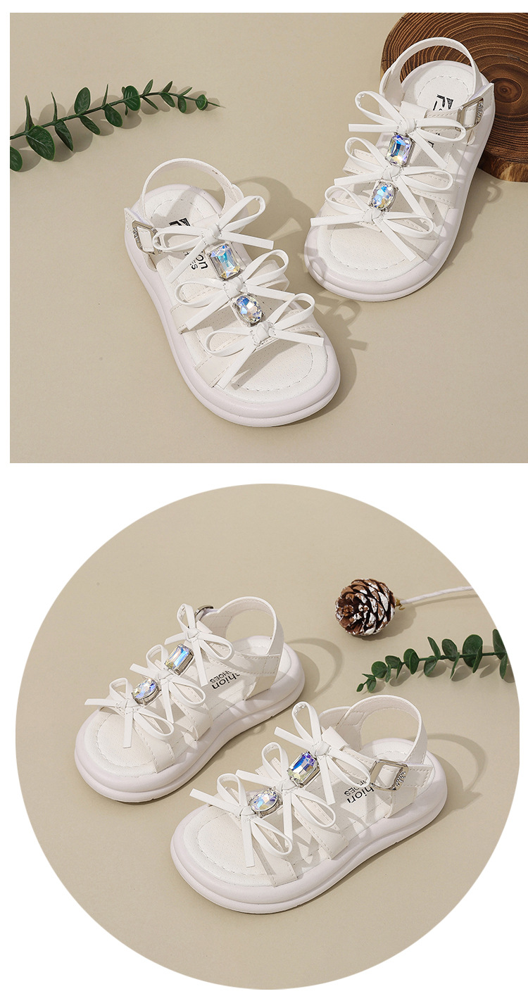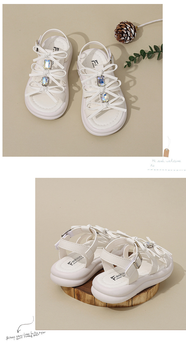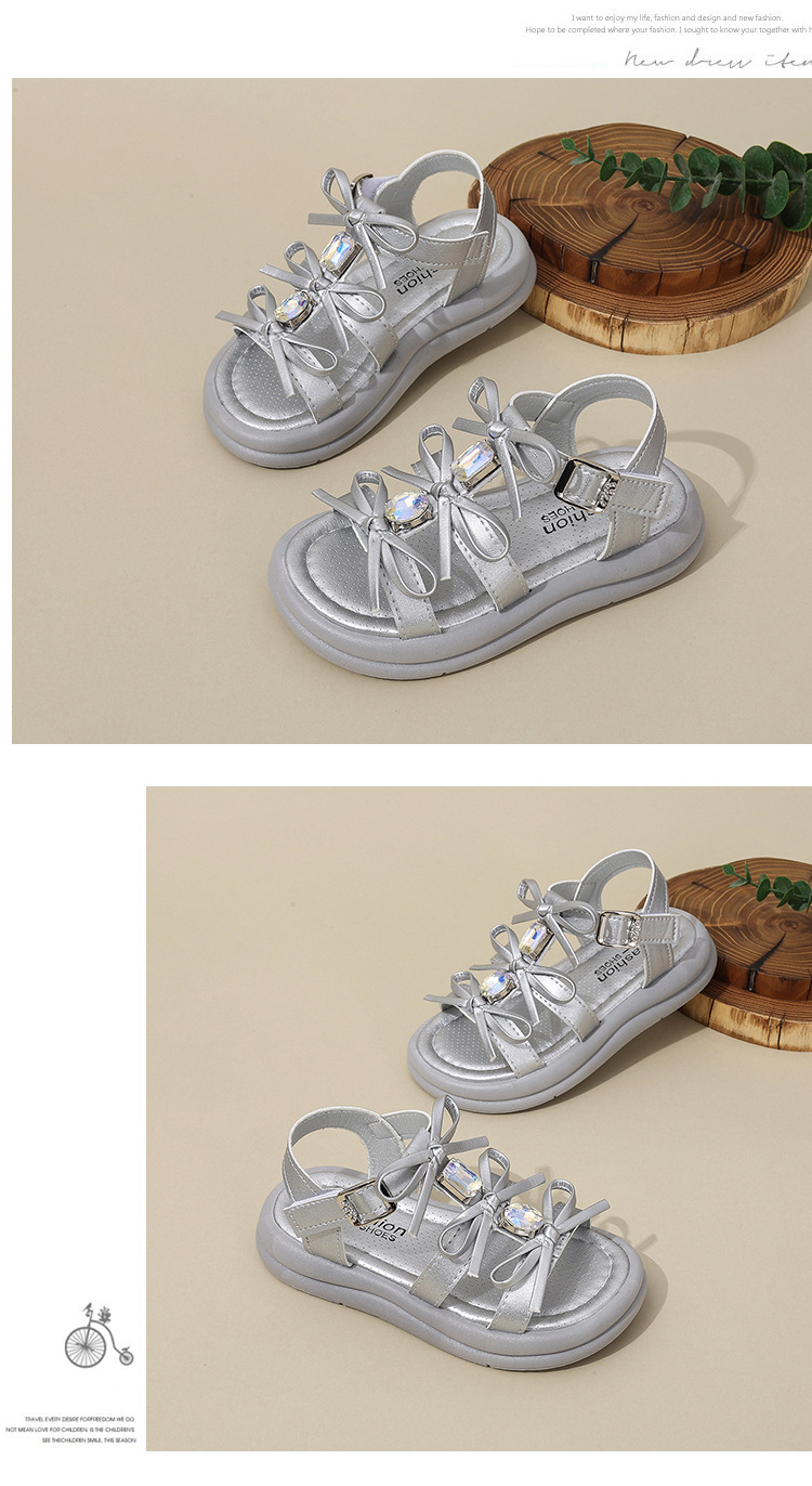 여자 신발 공주 실버 부드러운 밑창 로마 샌들 2025 여름 새로운 스타일 여자 나비 매듭 중형 및 대형 어린이 신발 유행스토어 가기
