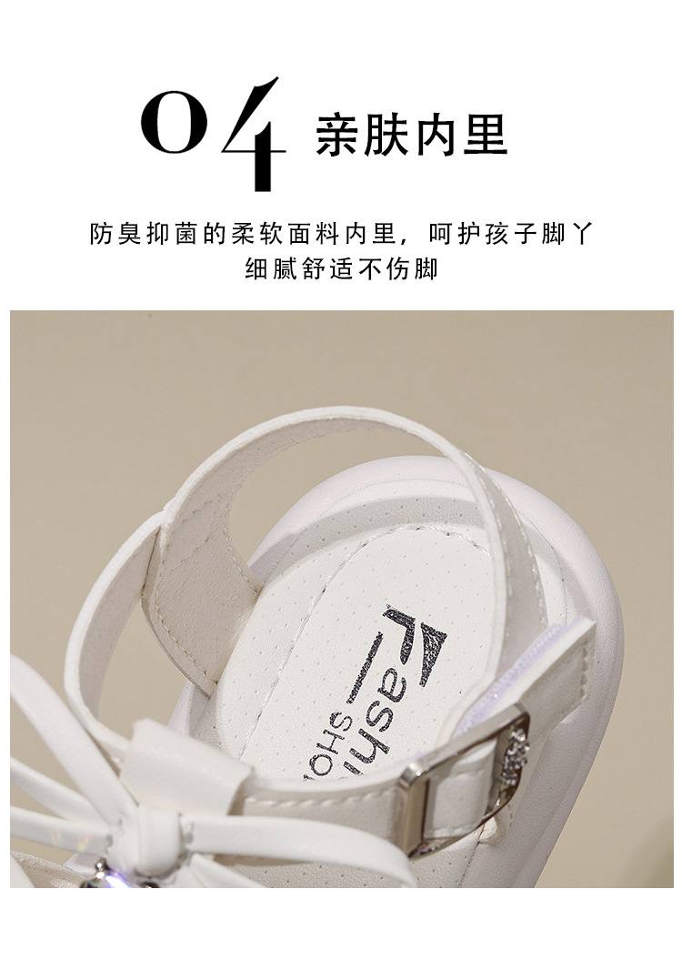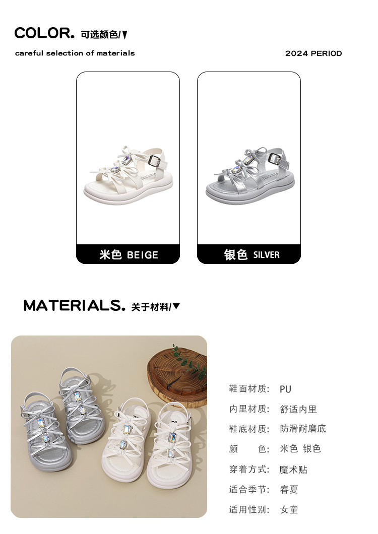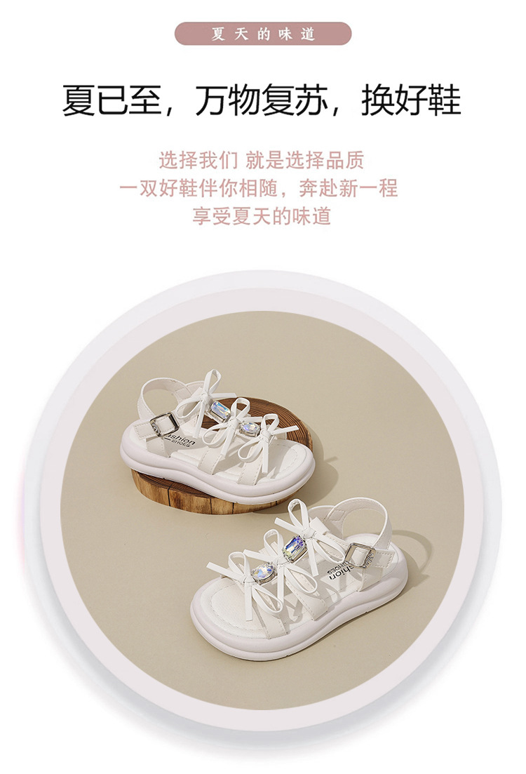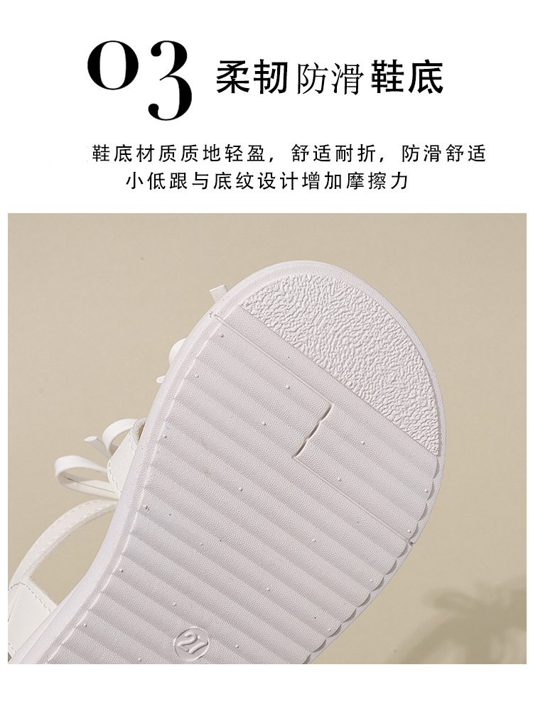 여자 신발 공주 실버 부드러운 밑창 로마 샌들 2025 여름 새로운 스타일 여자 나비 매듭 중형 및 대형 어린이 신발 유행스토어 가기