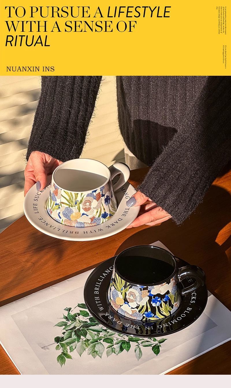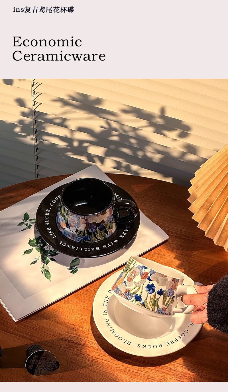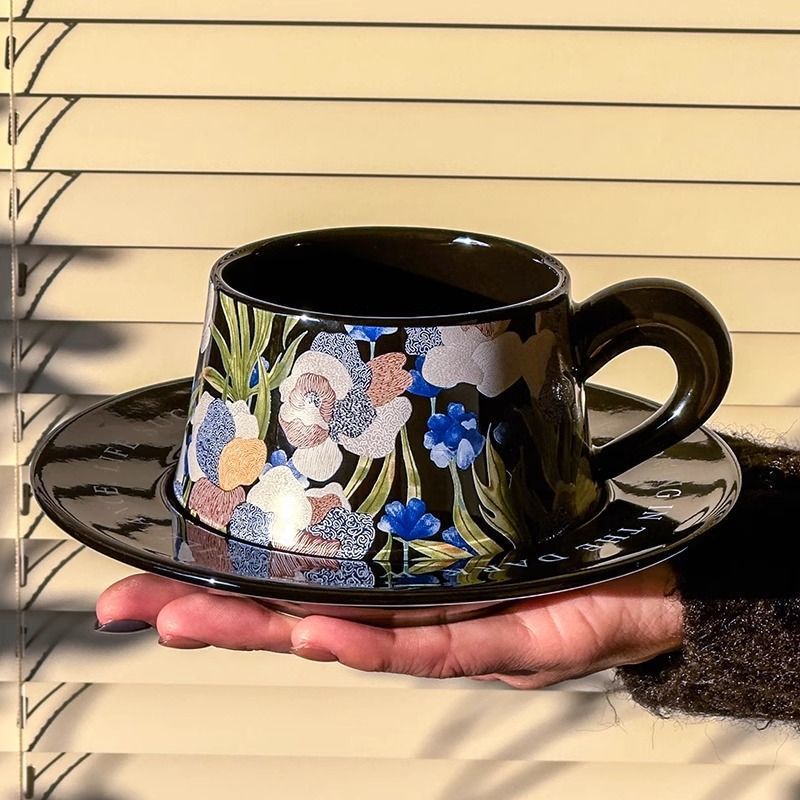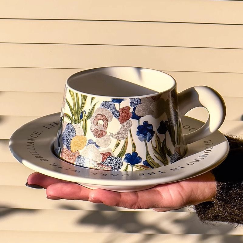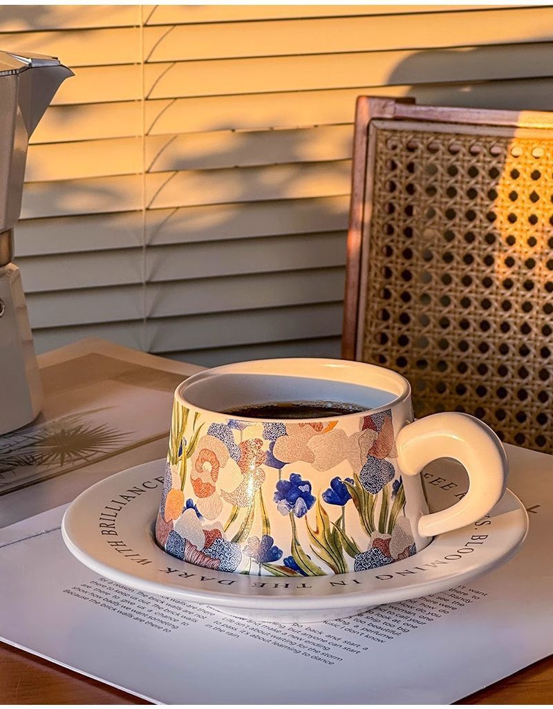 Ins 스타일 아이리스 커피 컵과 접시 세트 하이 엔드 절묘한 머그잔 신혼 크리 에이 티브 복고풍 세라믹 기념품스토어 가기