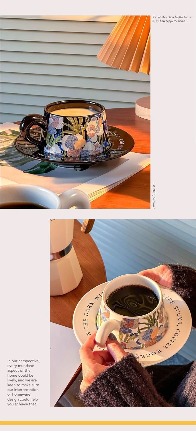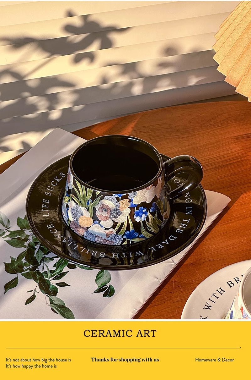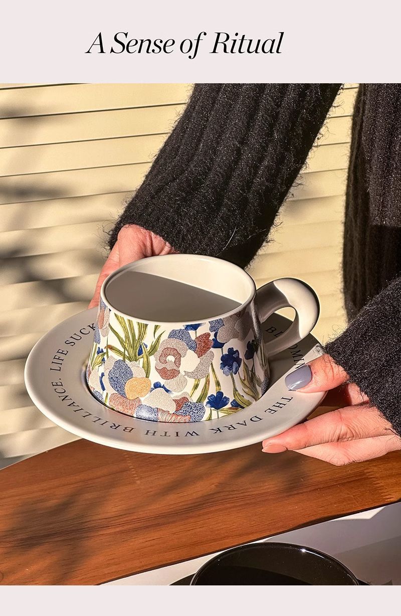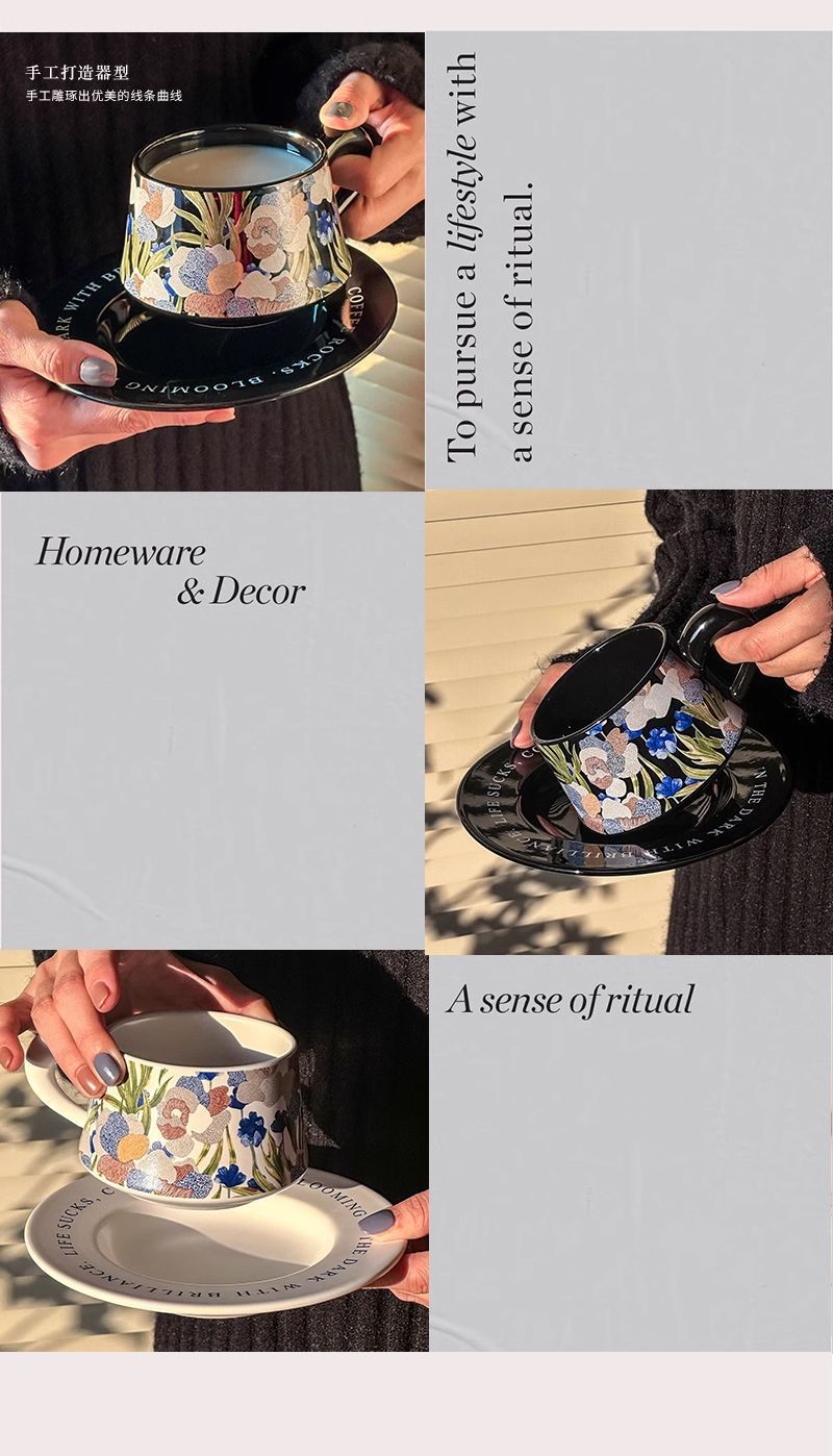 Ins 스타일 아이리스 커피 컵과 접시 세트 하이 엔드 절묘한 머그잔 신혼 크리 에이 티브 복고풍 세라믹 기념품스토어 가기