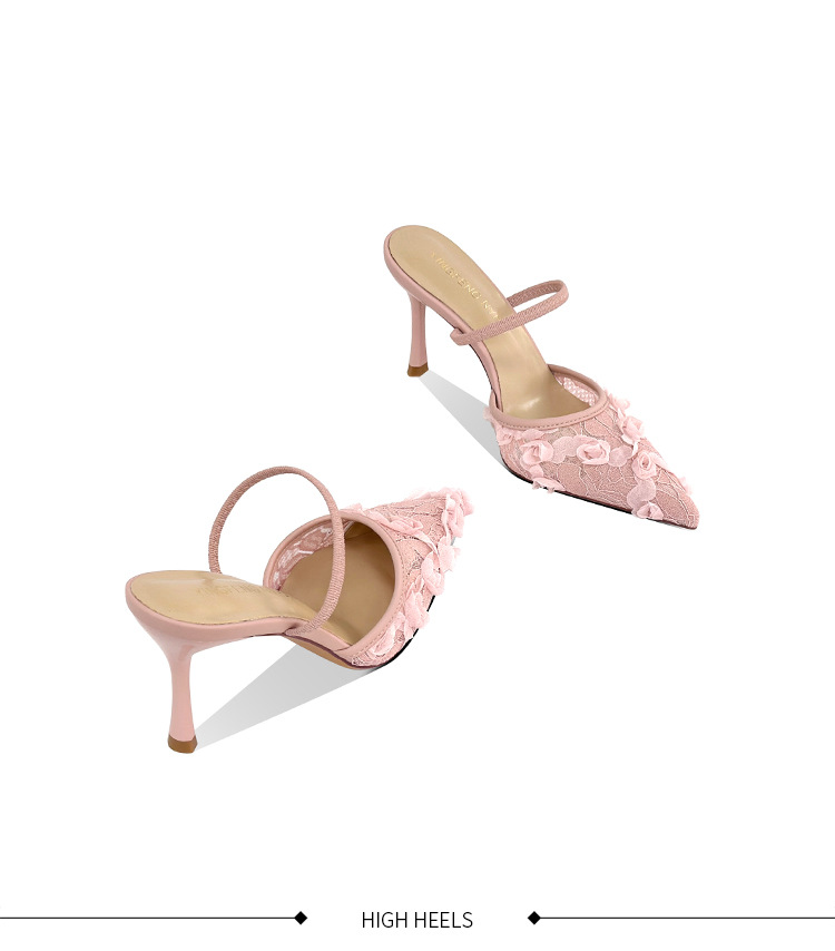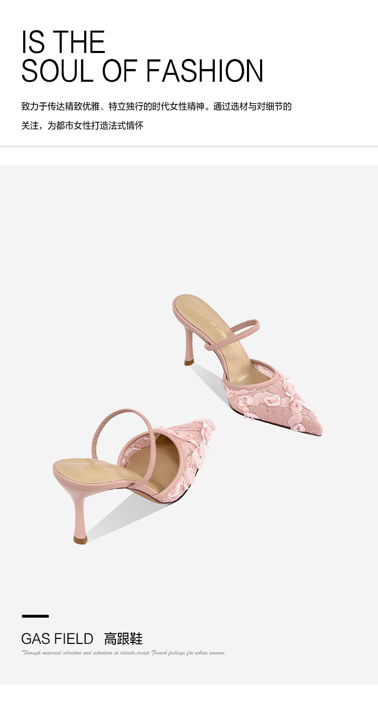 [재고] 여성용 바오터우 하프 슬리퍼 2025 년 여름 뉴 메시 여성용 얇은 힐 레이스 샌들스토어 가기