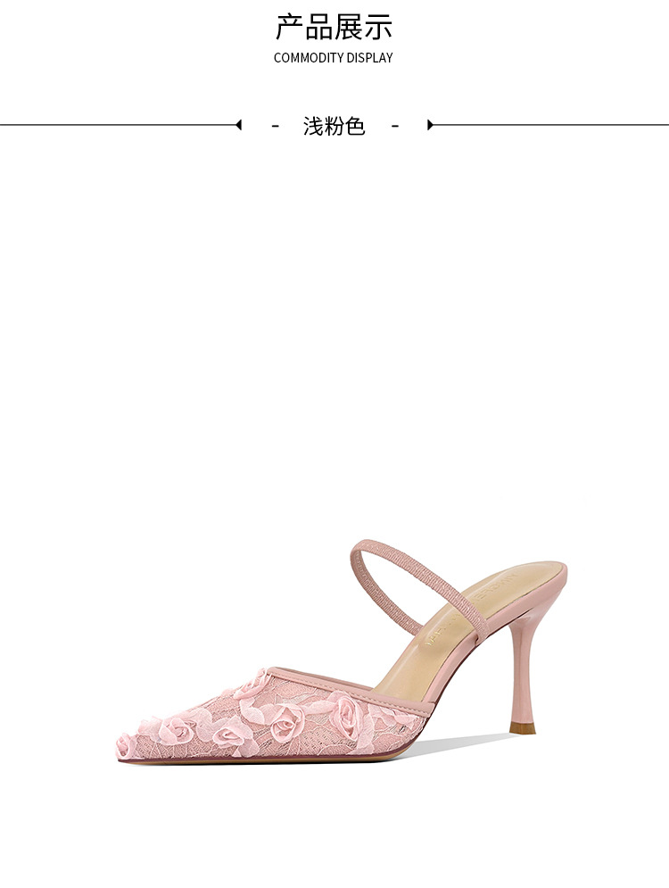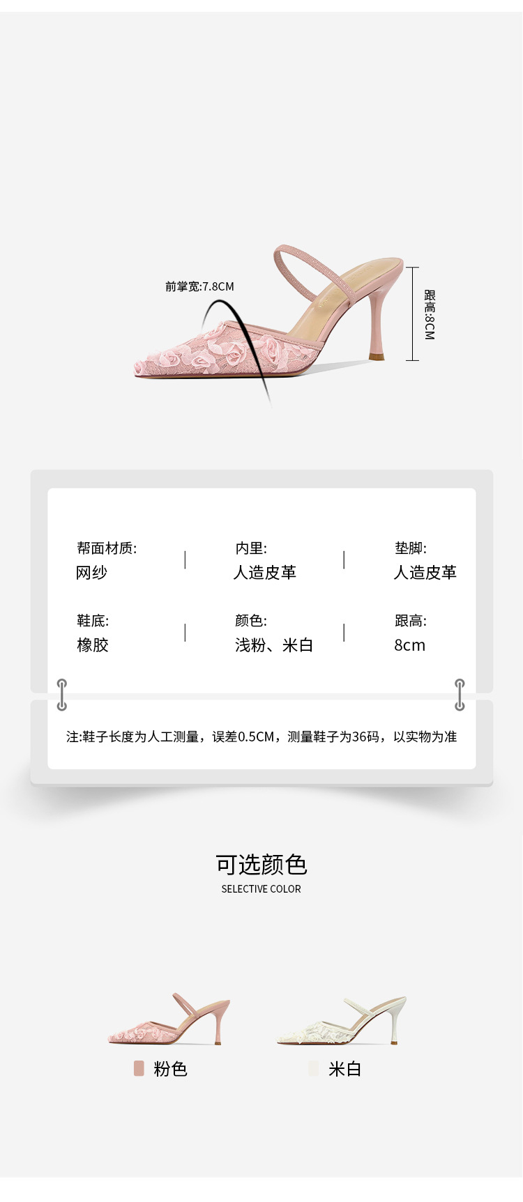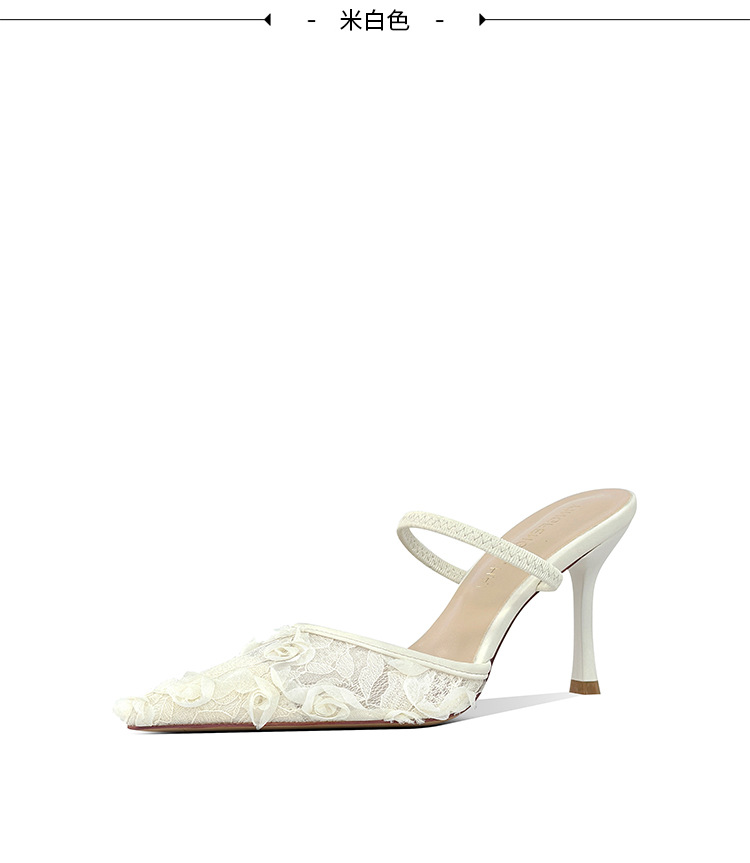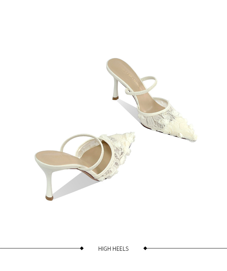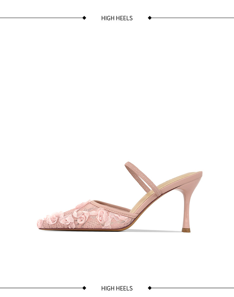 [재고] 여성용 바오터우 하프 슬리퍼 2025 년 여름 뉴 메시 여성용 얇은 힐 레이스 샌들