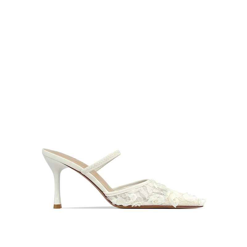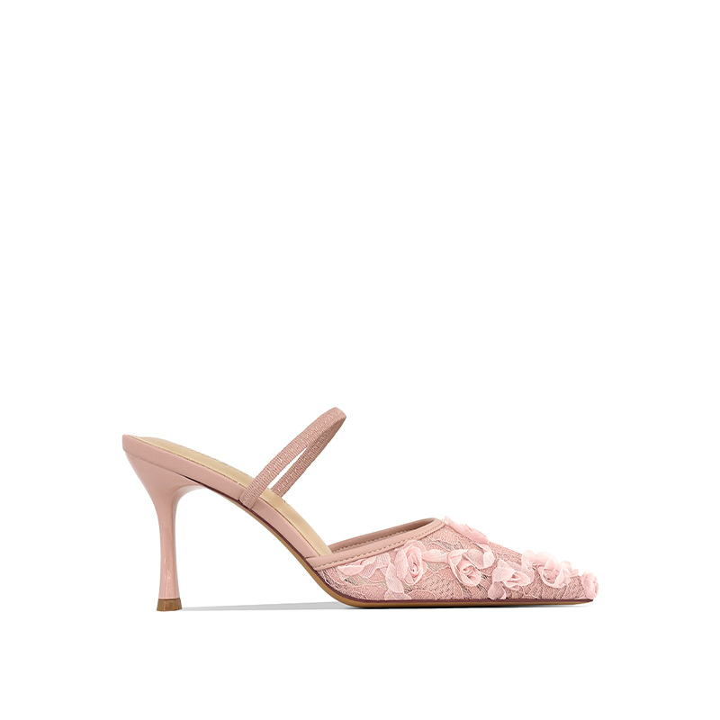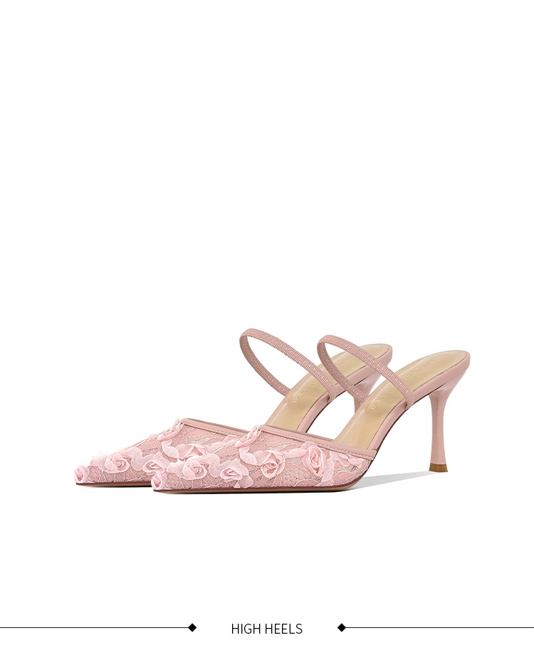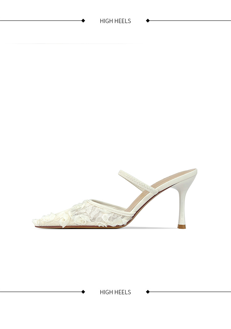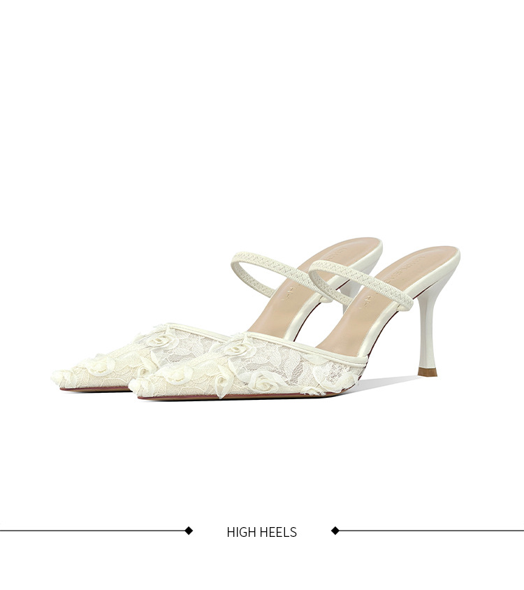 [재고] 여성용 바오터우 하프 슬리퍼 2025 년 여름 뉴 메시 여성용 얇은 힐 레이스 샌들