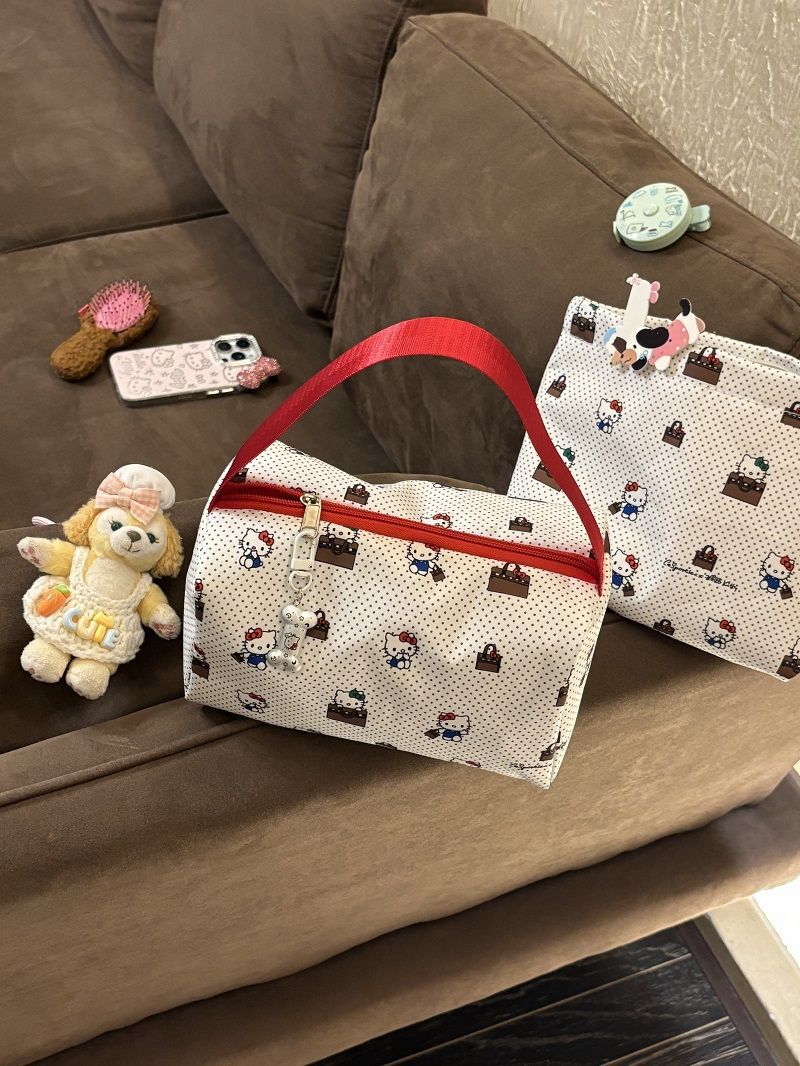 • 흰색 물방울 무늬 키티 베개 가방 휴대용 스타일 - 장식 없음