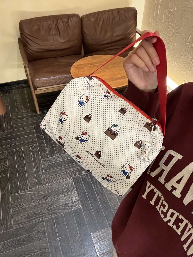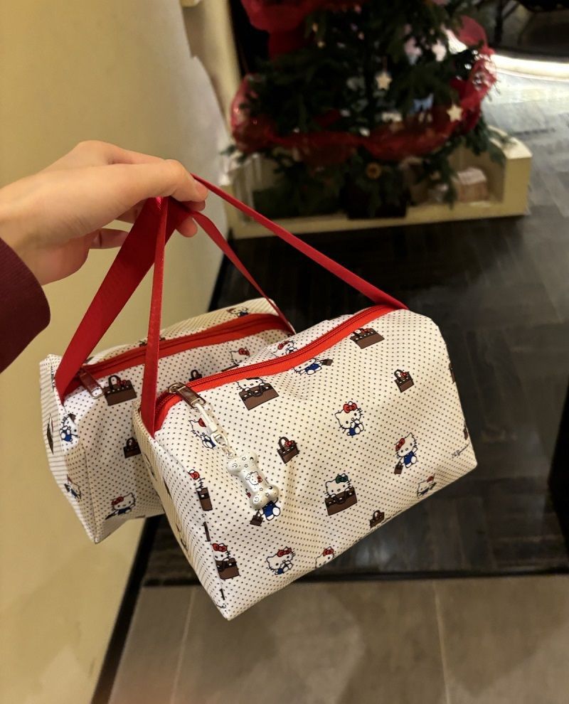Túi ựng mphm 귀여운 폴카 도트 키티 고양이 대용량 휴대용 화장품 가방