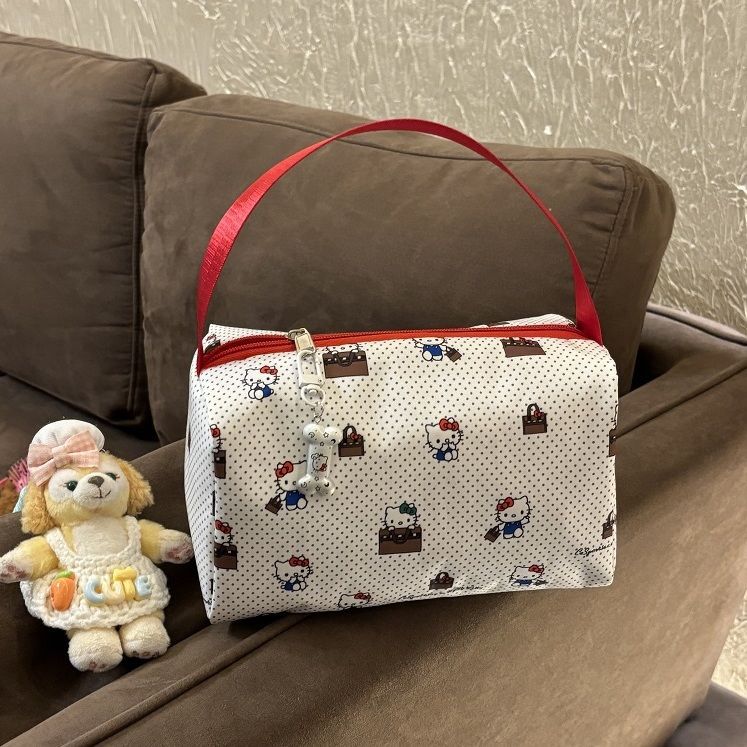 Túi ựng mphm 귀여운 폴카 도트 키티 고양이 대용량 휴대용 화장품 가방스토어 가기