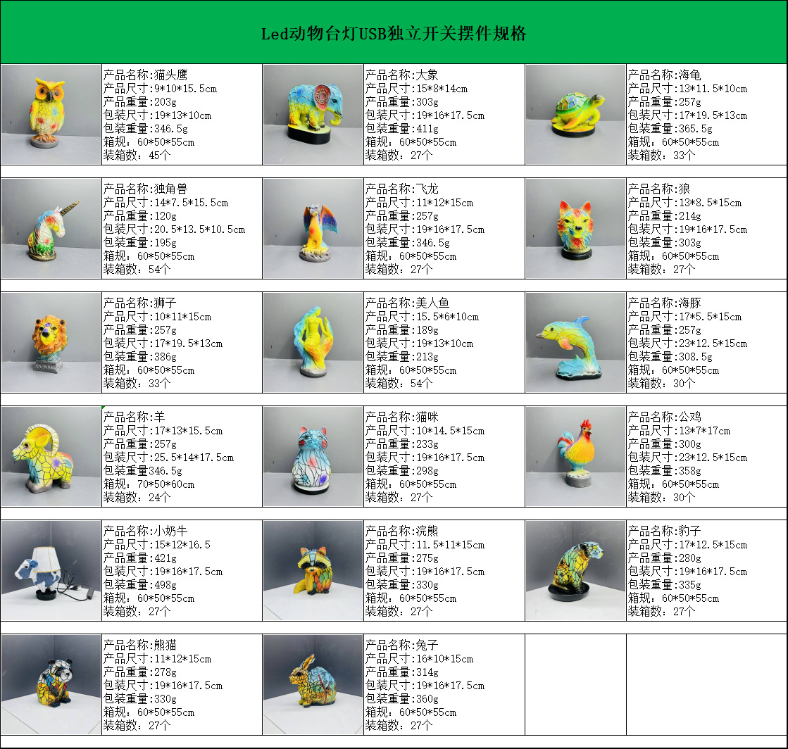국경 새 개 시리즈 동물 데스크톱 장식품 LED 야간 조명 수지 동상 홈 침대 옆 장식스토어 가기