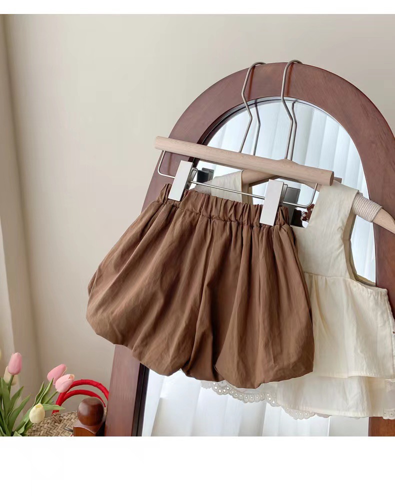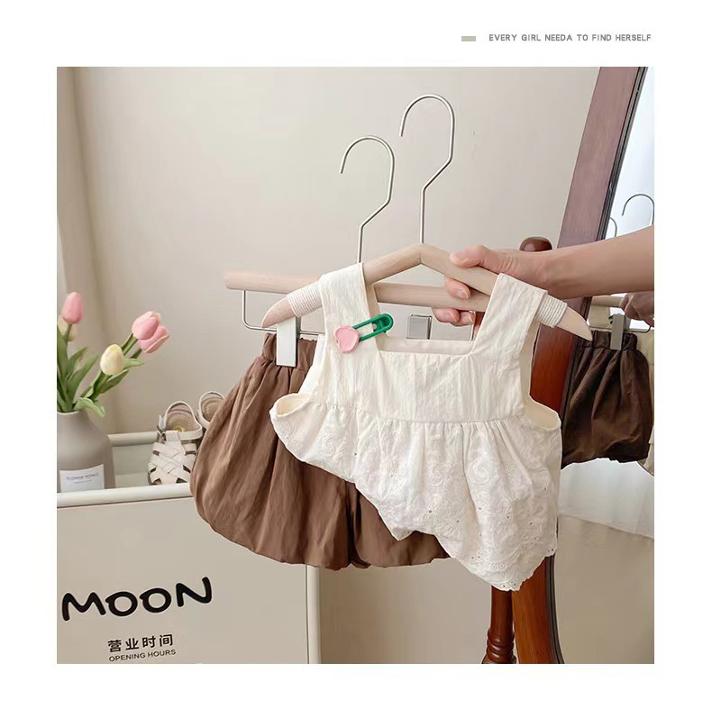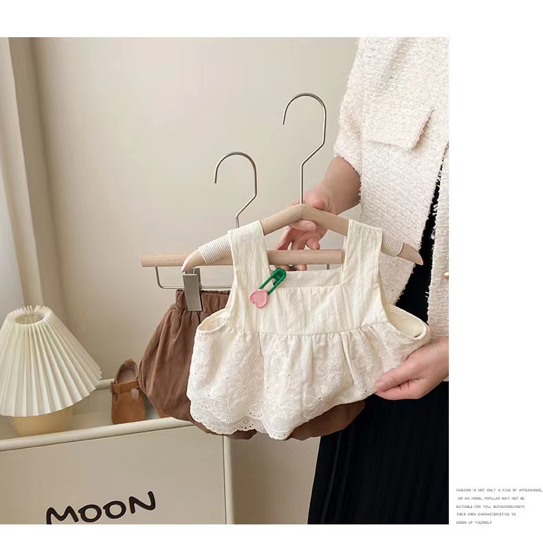 소녀 세트 서양식 조끼 자수 인형 셔츠 2024 중소 어린이 여성 보물 민소매 탑 코튼 바지 투피스 세트