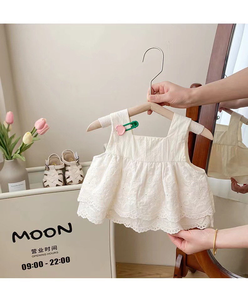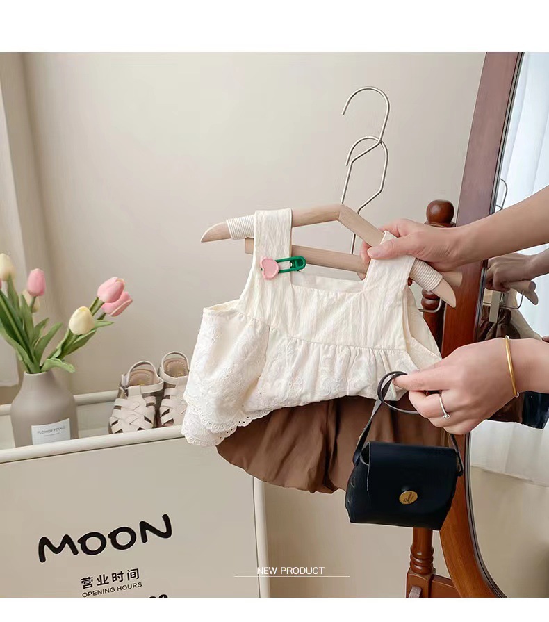 女童套装洋气背心刺绣娃娃衫2023中小童女宝无袖上衣花苞裤两件套