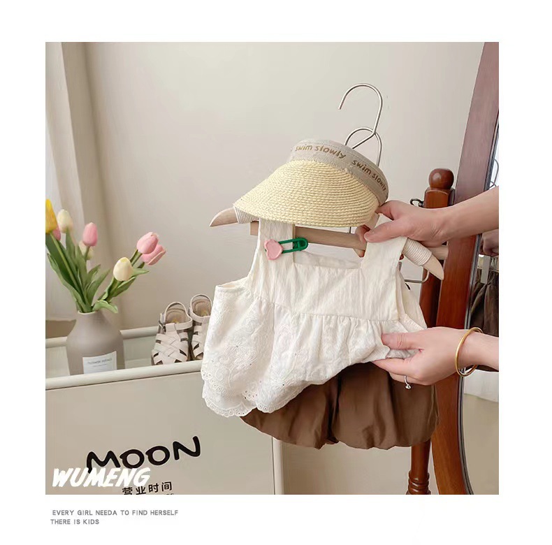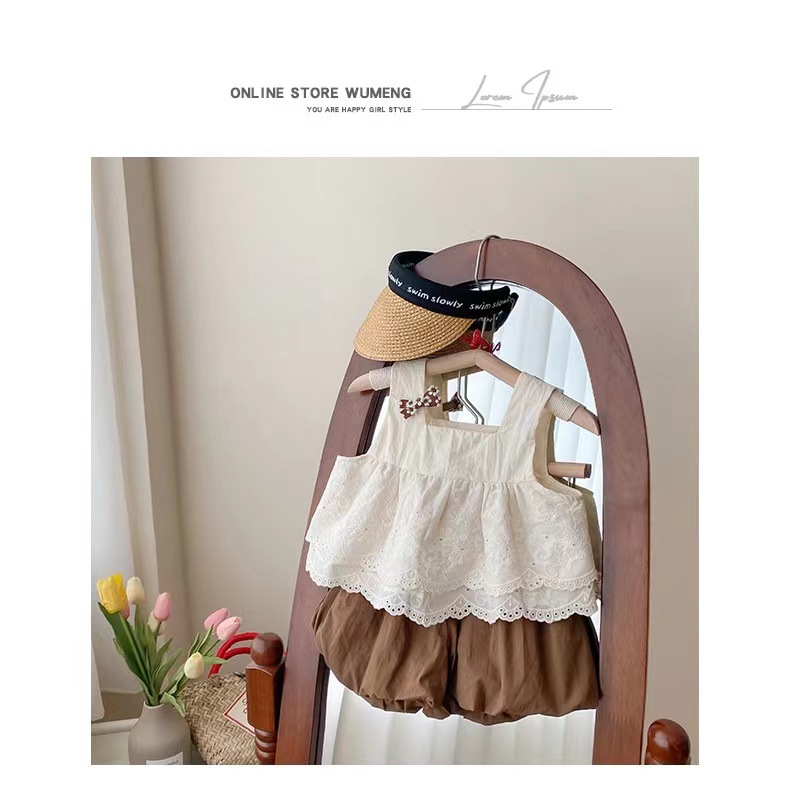 소녀 세트 서양식 조끼 자수 인형 셔츠 2024 중소 어린이 여성 보물 민소매 탑 코튼 바지 투피스 세트스토어 가기