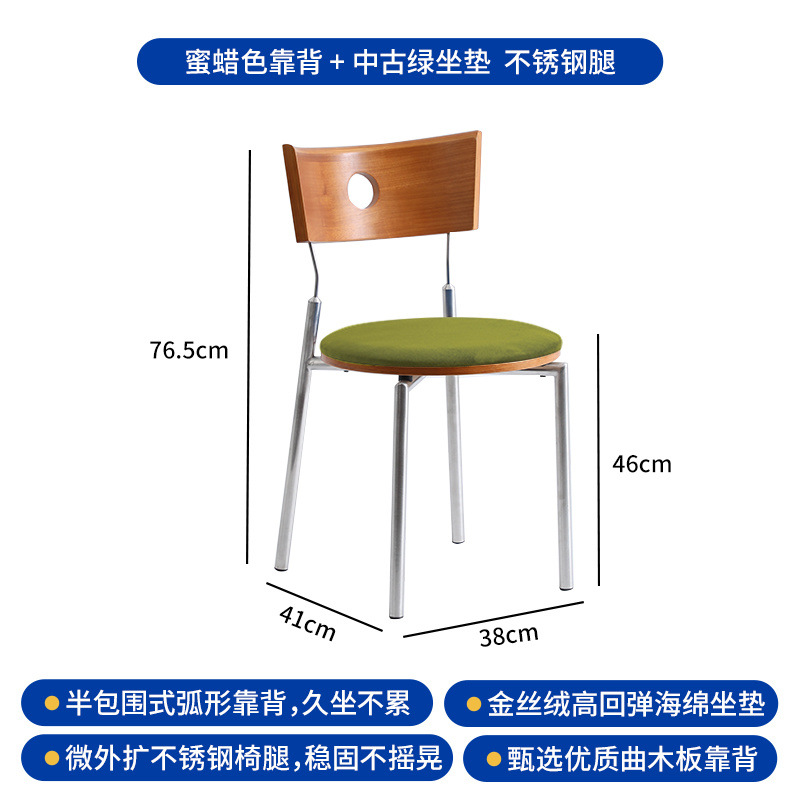 골동품 식당 의자 홈 디자이너 솔리드 우드 등받이 의자 인터넷 기념 캐주얼 레스토랑 빈티지 스테인레스 스틸 식탁 의자