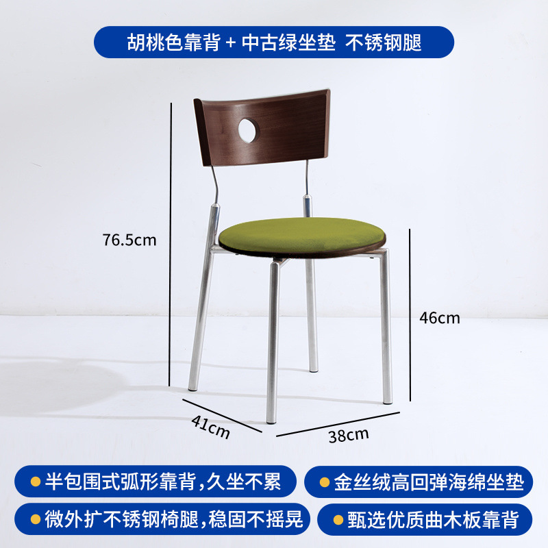 골동품 식당 의자 홈 디자이너 솔리드 우드 등받이 의자 인터넷 기념 캐주얼 레스토랑 빈티지 스테인레스 스틸 식탁 의자스토어 가기