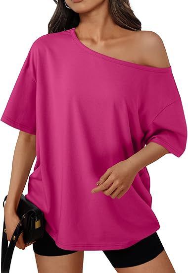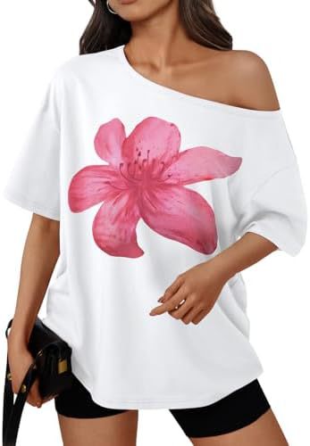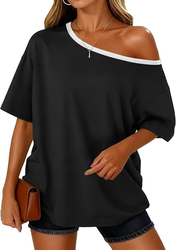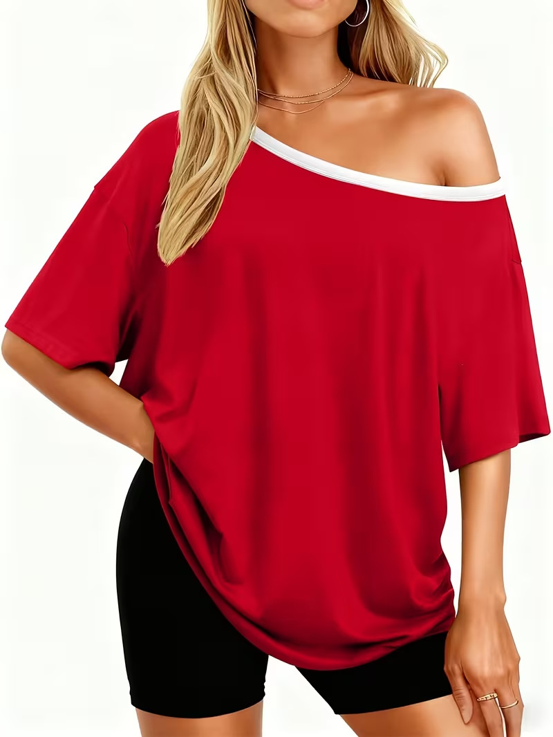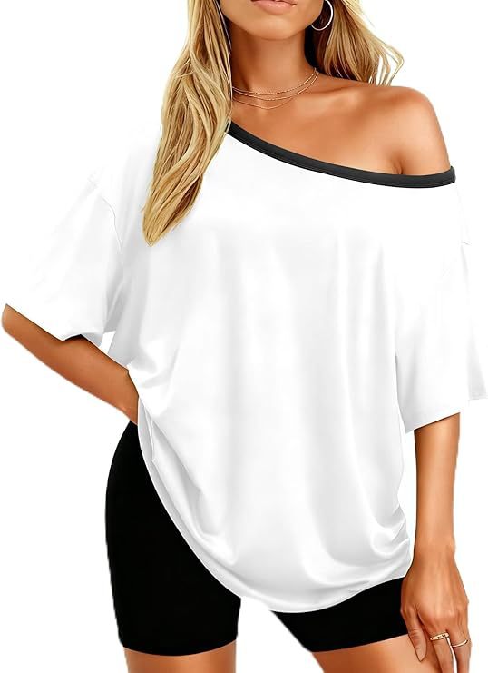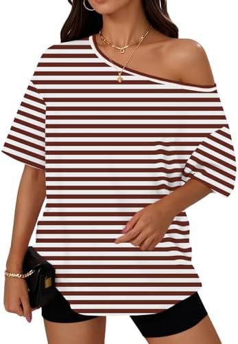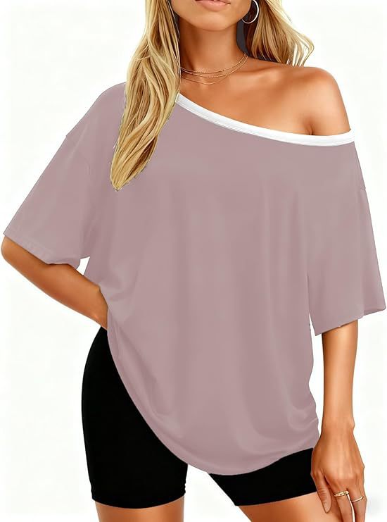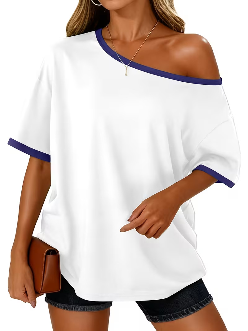 2026년 유럽 및 미국 해외 신상 여성 티셔츠, 캐주얼 패션 사선 넥 탑, 여성 니트 반팔 탑 (재고 있음)스토어 가기