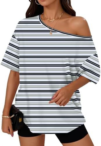 2026년 유럽 및 미국 해외 신상 여성 티셔츠, 캐주얼 패션 사선 넥 탑, 여성 니트 반팔 탑 (재고 있음)