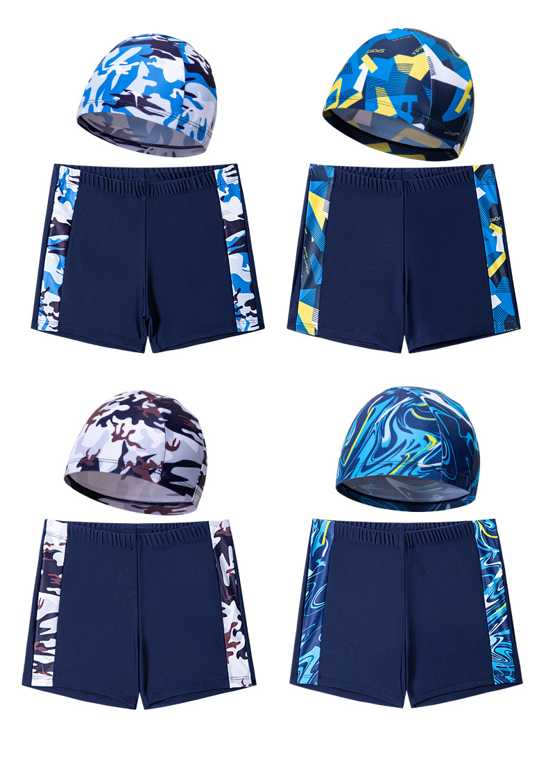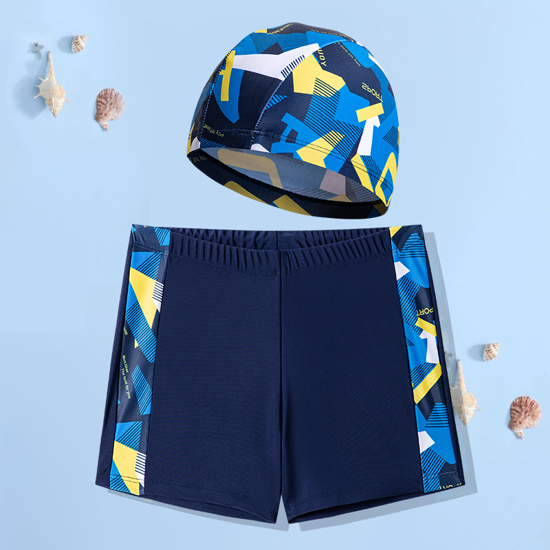Mbià qu presson bi trem 소년 수영 트렁크 수영 모자 세트스토어 가기