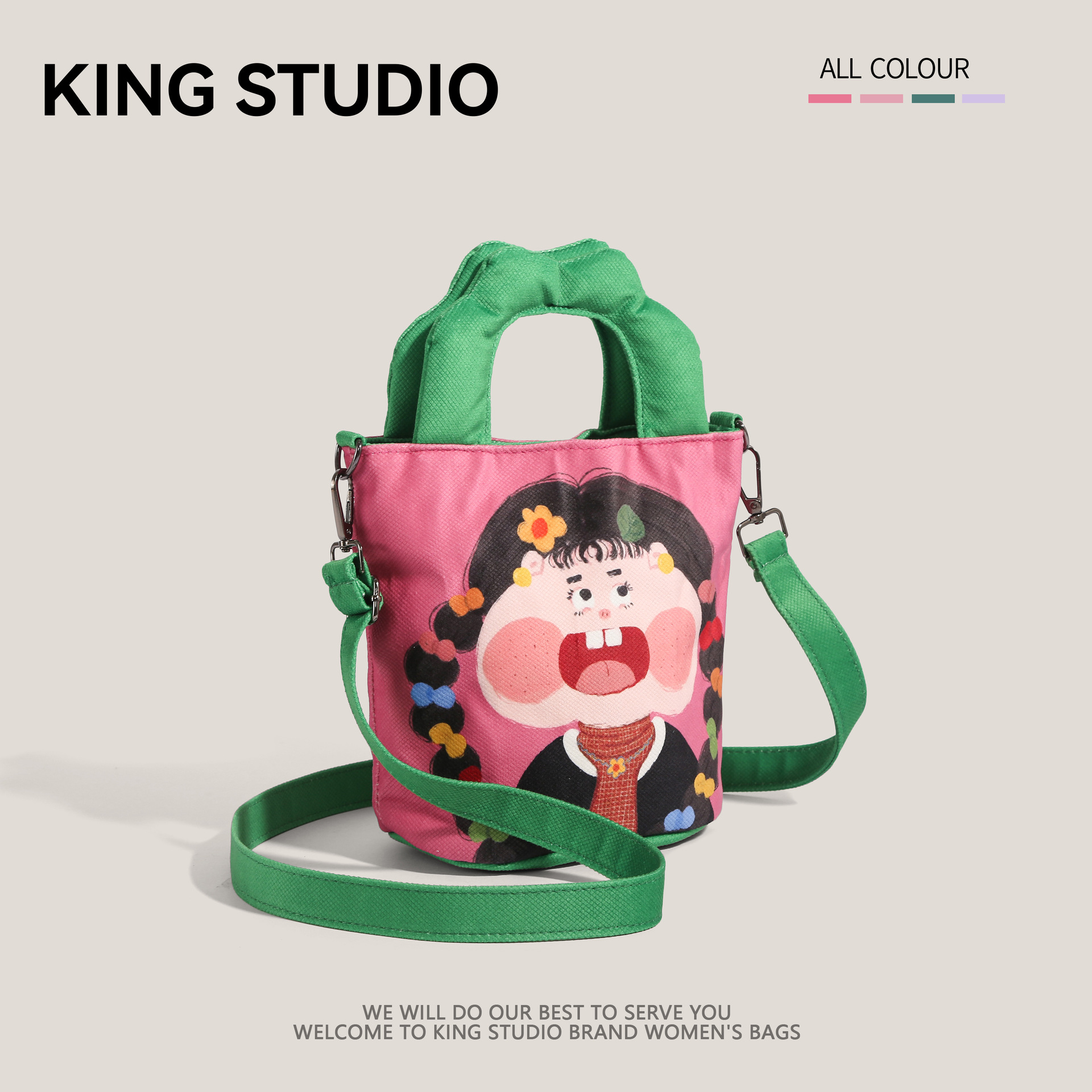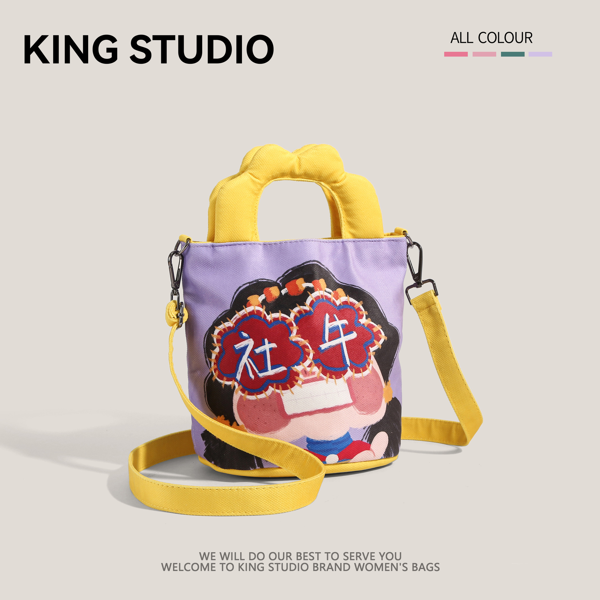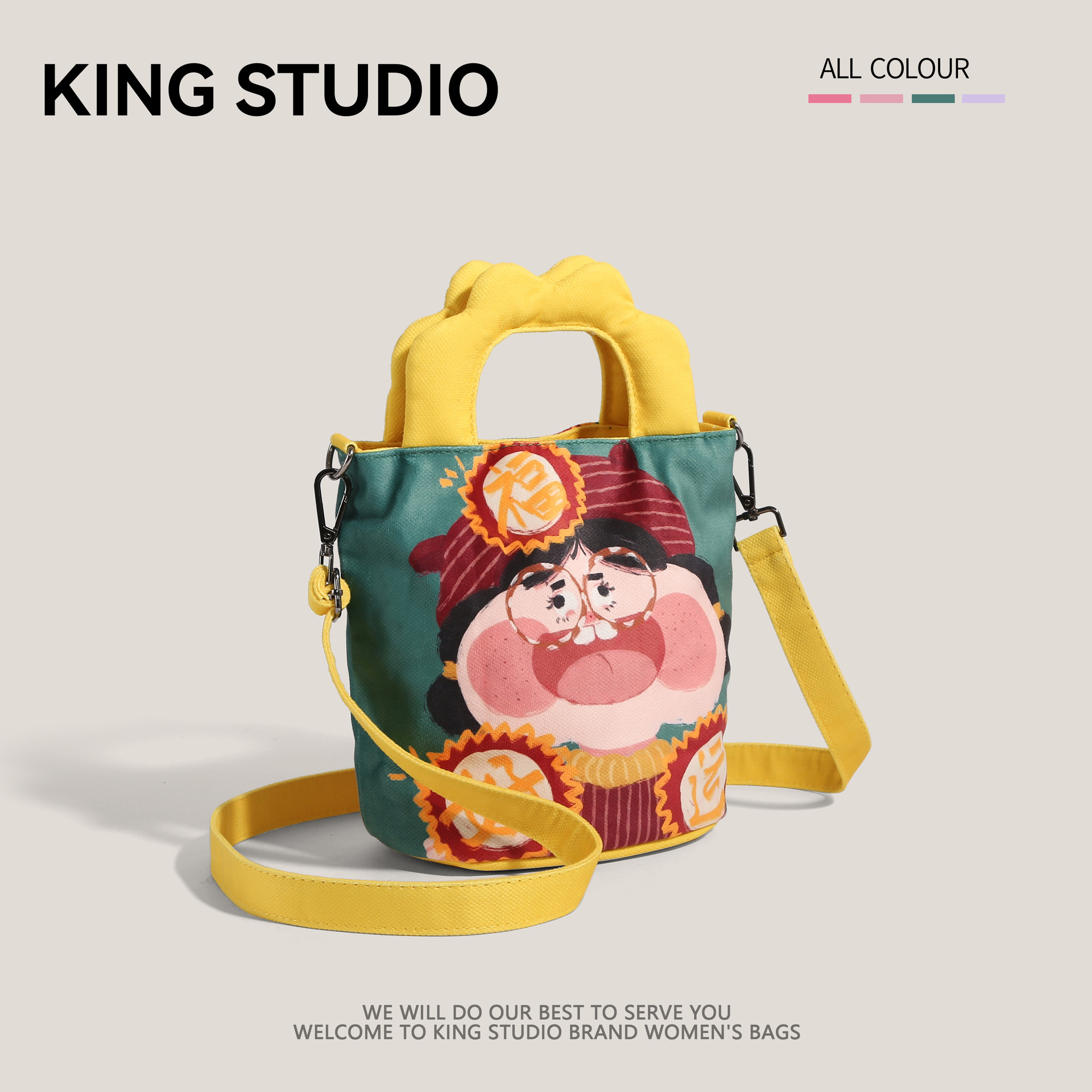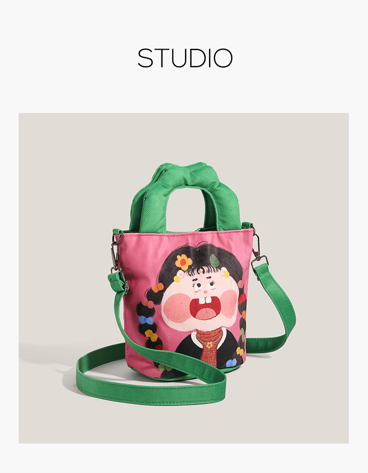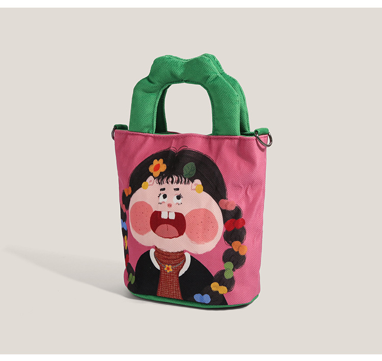 원래 그림 대용량 양동이 가방 여성의 2025 새로운 유행 핸드백 못생긴 귀여운 웃긴 캔버스 크로스 바디 백
