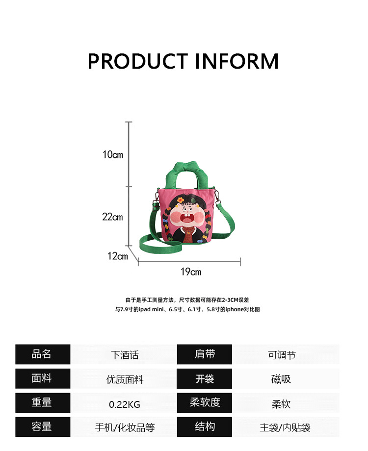 원래 그림 대용량 양동이 가방 여성의 2025 새로운 유행 핸드백 못생긴 귀여운 웃긴 캔버스 크로스 바디 백스토어 가기