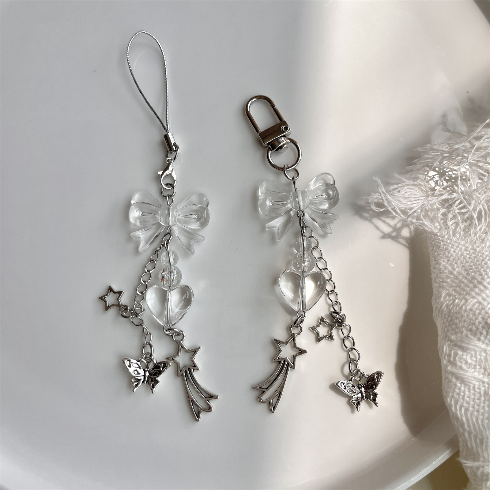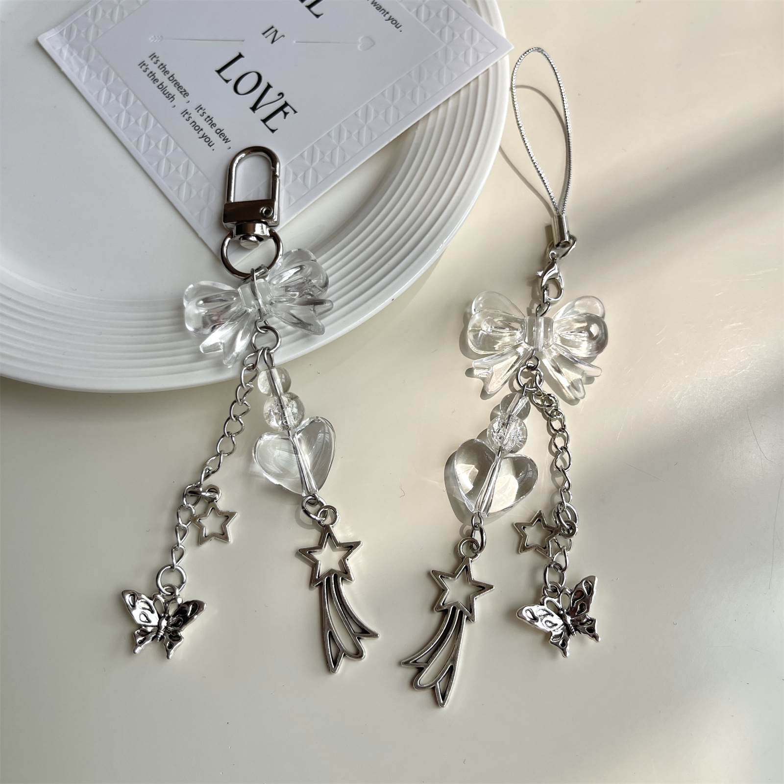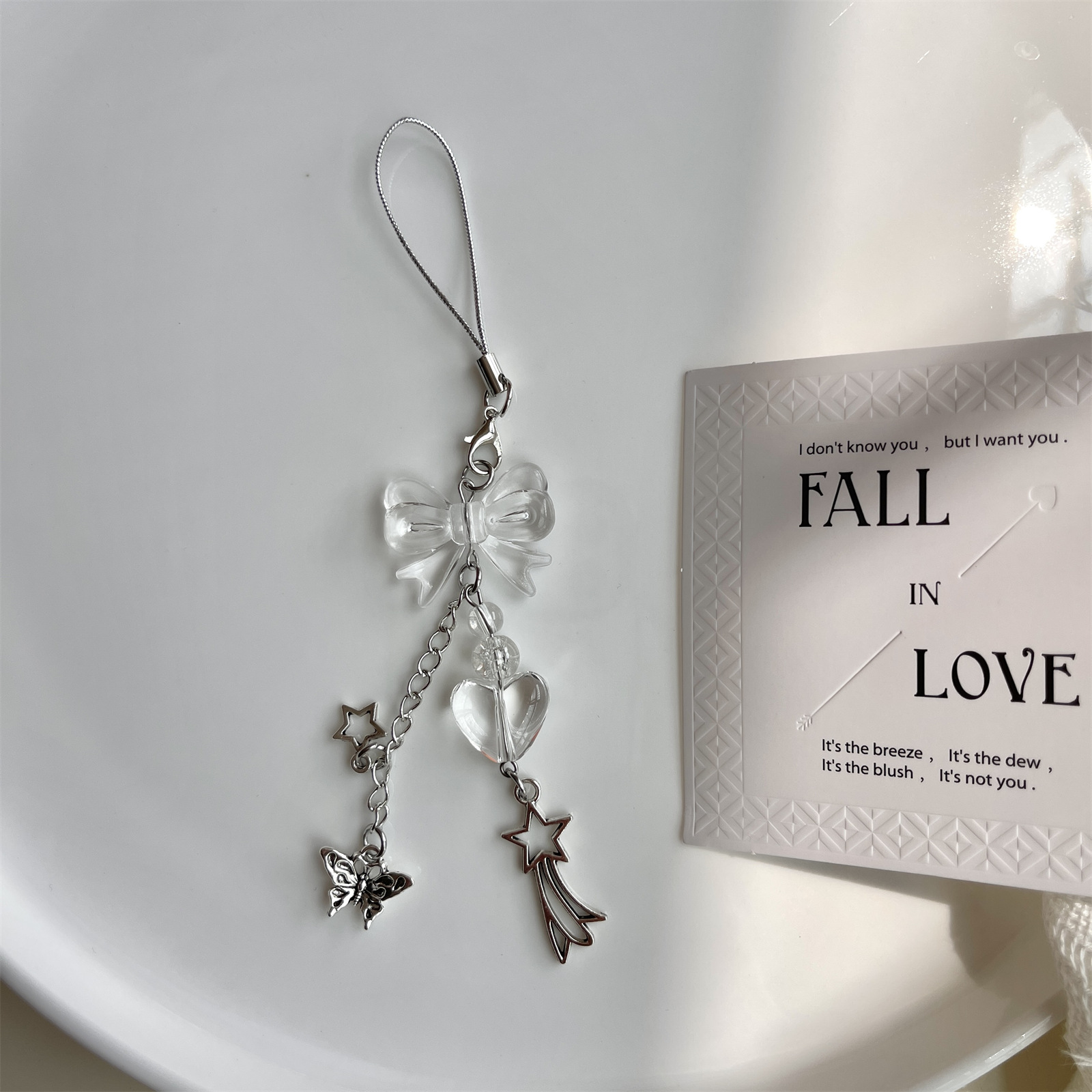 나비 매듭 오각별 사랑 카메라 휴대 전화 체인 자동차 가방 키 체인 달콤한 간단한 소녀 하트 펜던트스토어 가기