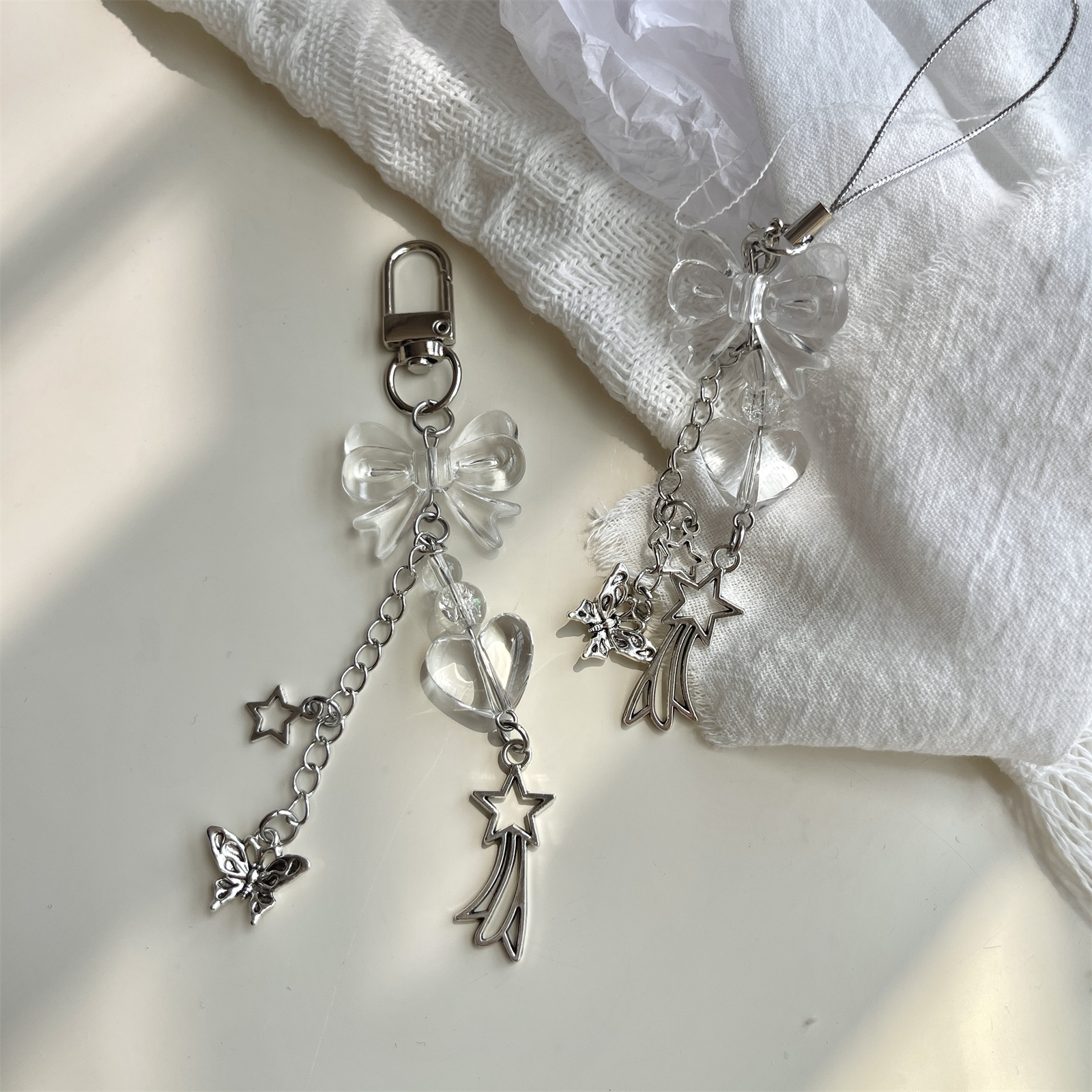 나비 매듭 오각별 사랑 카메라 휴대 전화 체인 자동차 가방 키 체인 달콤한 간단한 소녀 하트 펜던트