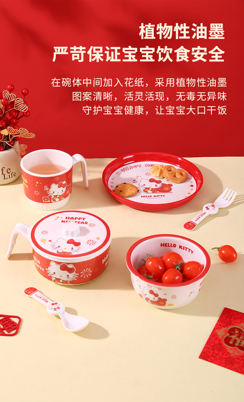 산리오 헬로 키티 멜라민 어린이 식기 홈 귀여운 만화 소녀 심장 그릇 디스크 도매스토어 가기