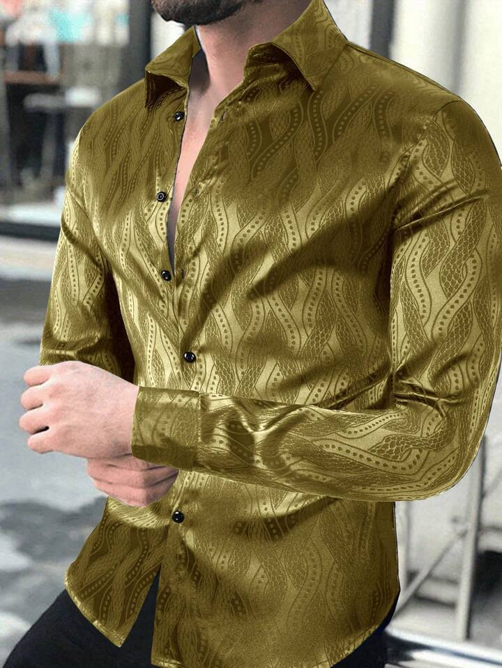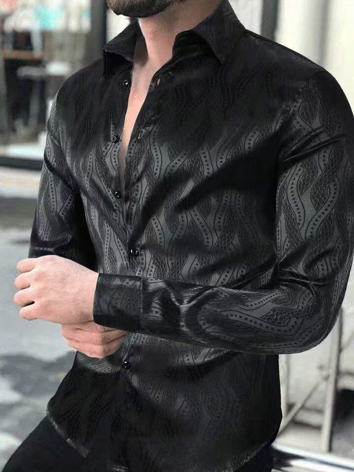 2025년 신상 남성 셔츠 데일리 캐주얼 프린트 추상무늬 봄가을 얇은 스판 셔츠 남성 긴팔