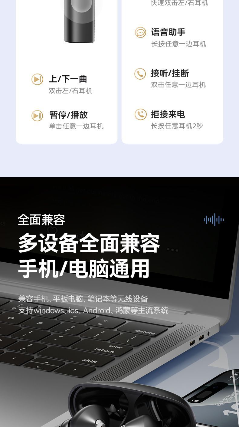 GT151 블루투스 헤드셋 소음 감소 HIFI 실제 무선 스포츠 하이 퀄리티 TWS 반 귀 편안함 도매