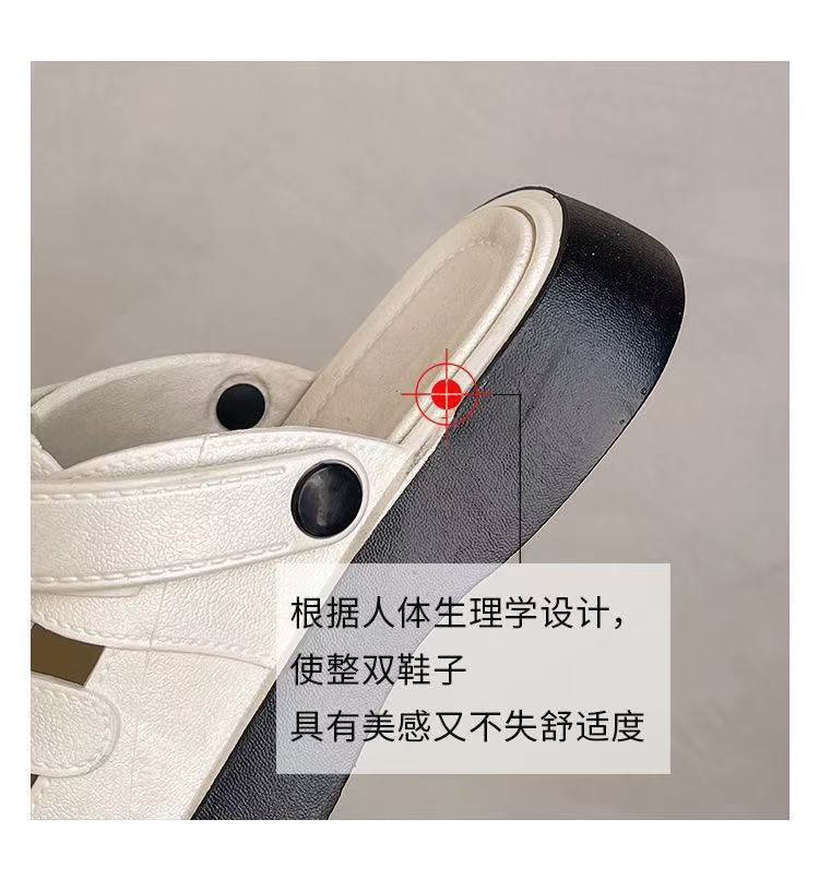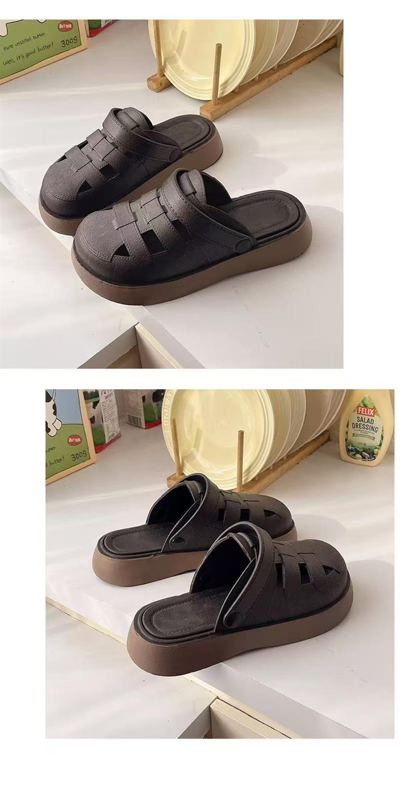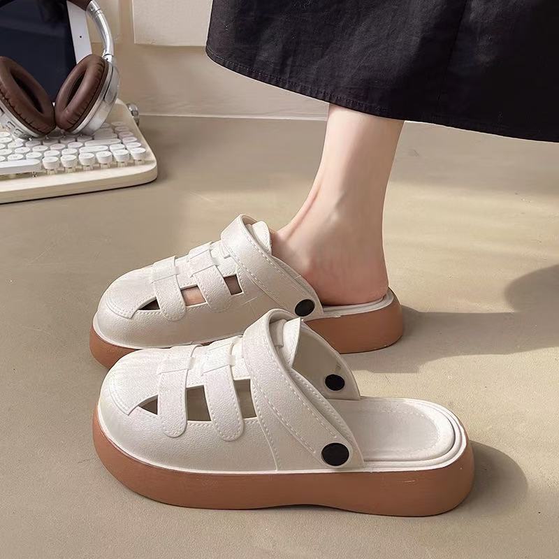 한국판 니치인스 바오터우 두꺼운 밑창 하프슬리퍼 여성 투웨어 중공 바오터우 샌들 홀바닥 비치 슬리퍼