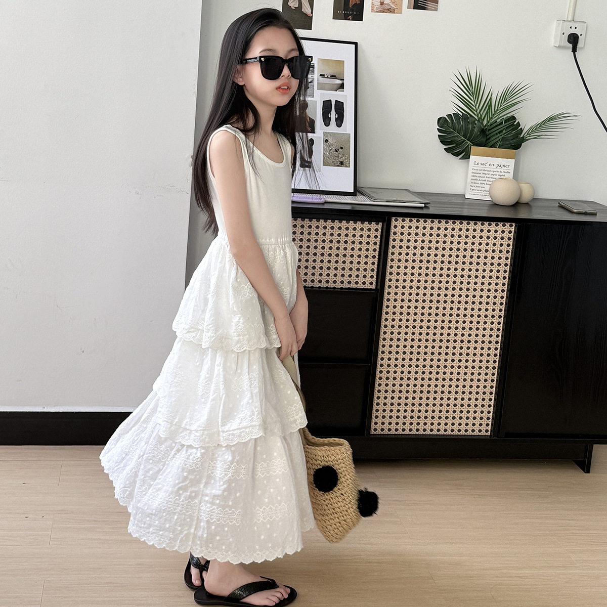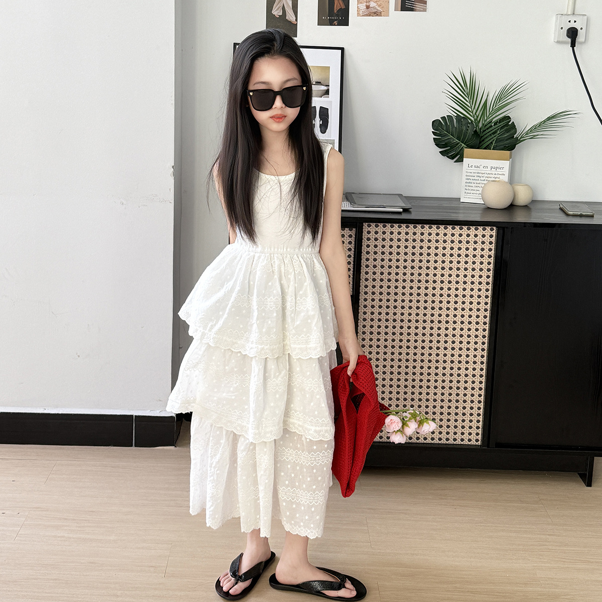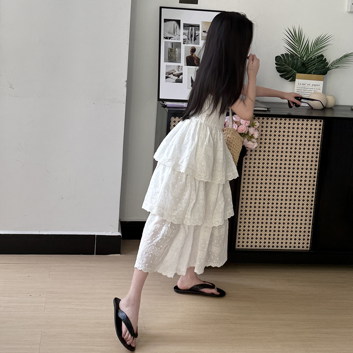 소녀의 발레 원피스 공주 원피스 서양식 원피스 소녀의 흰색 긴 소매 원피스 니트 레이스 케이크 원피스