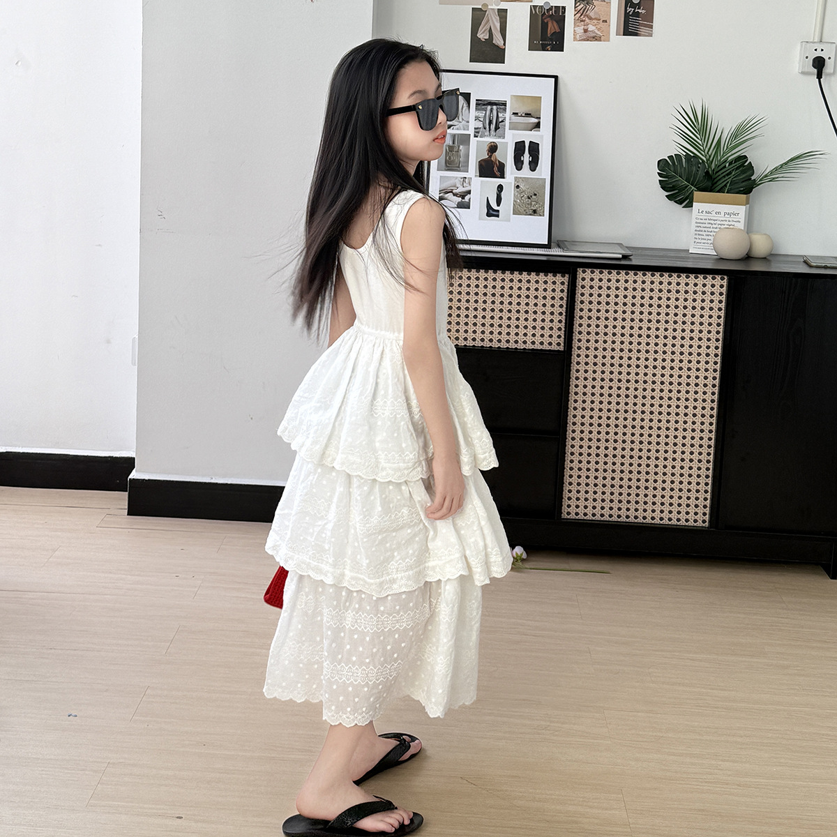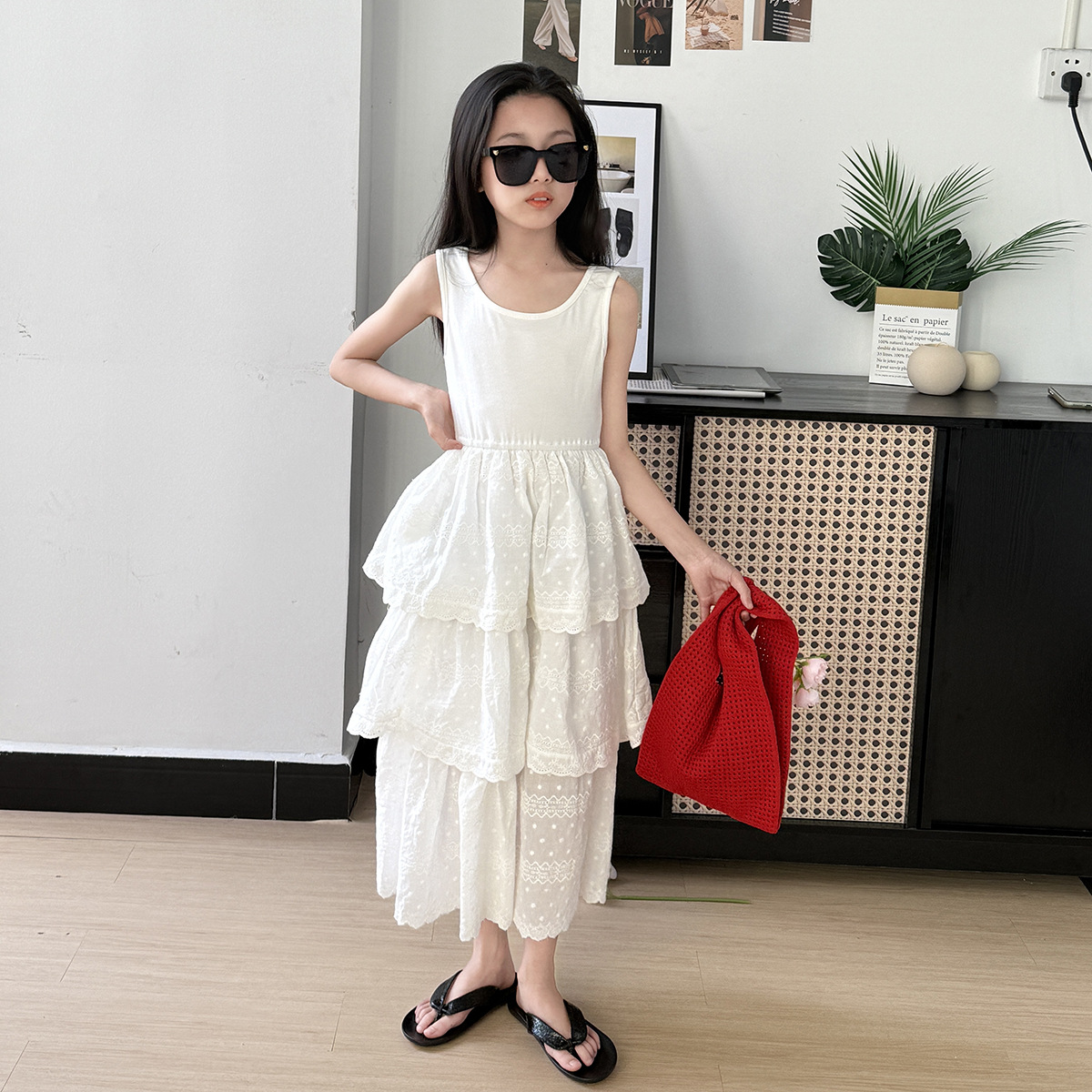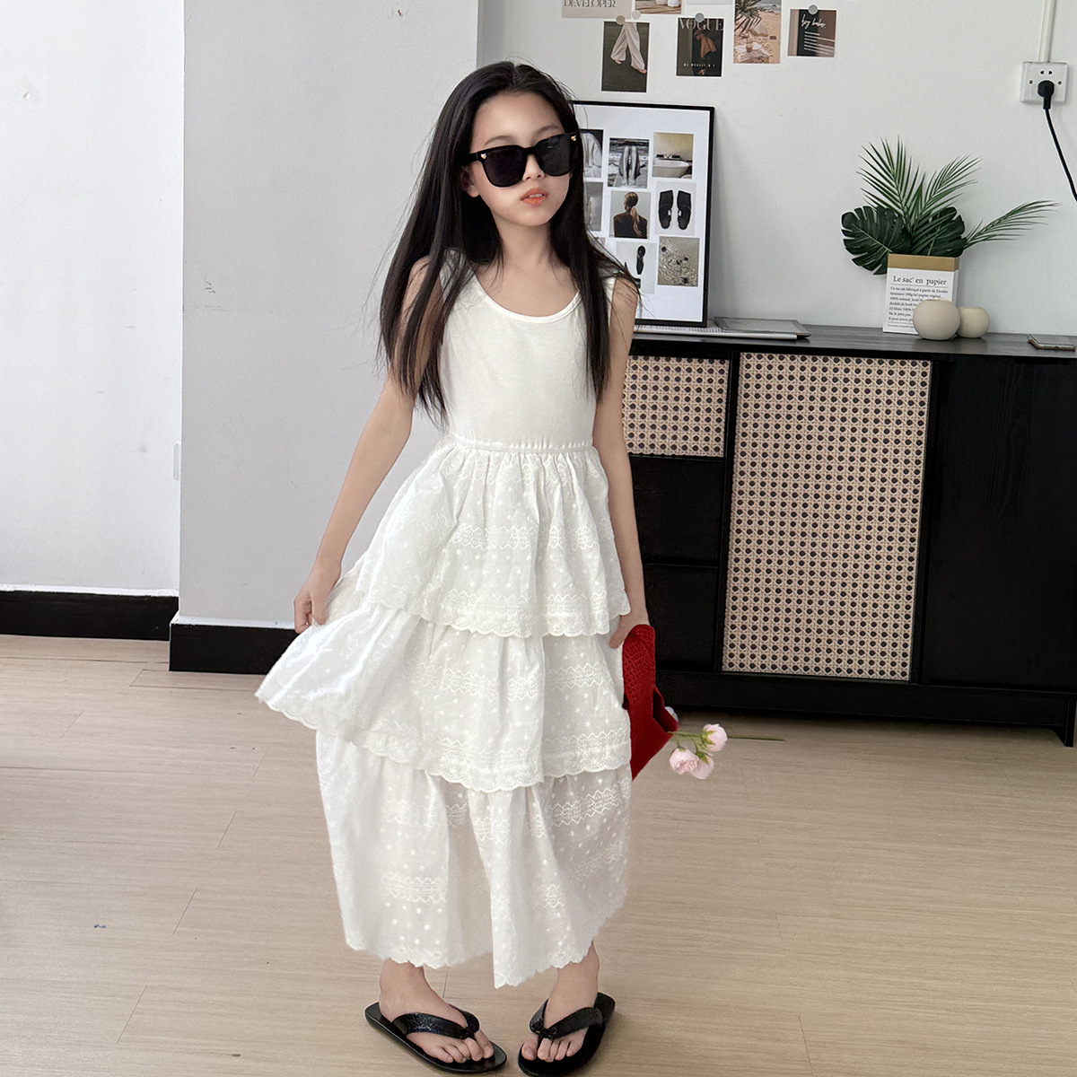 소녀의 발레 원피스 공주 원피스 서양식 원피스 소녀의 흰색 긴 소매 원피스 니트 레이스 케이크 원피스