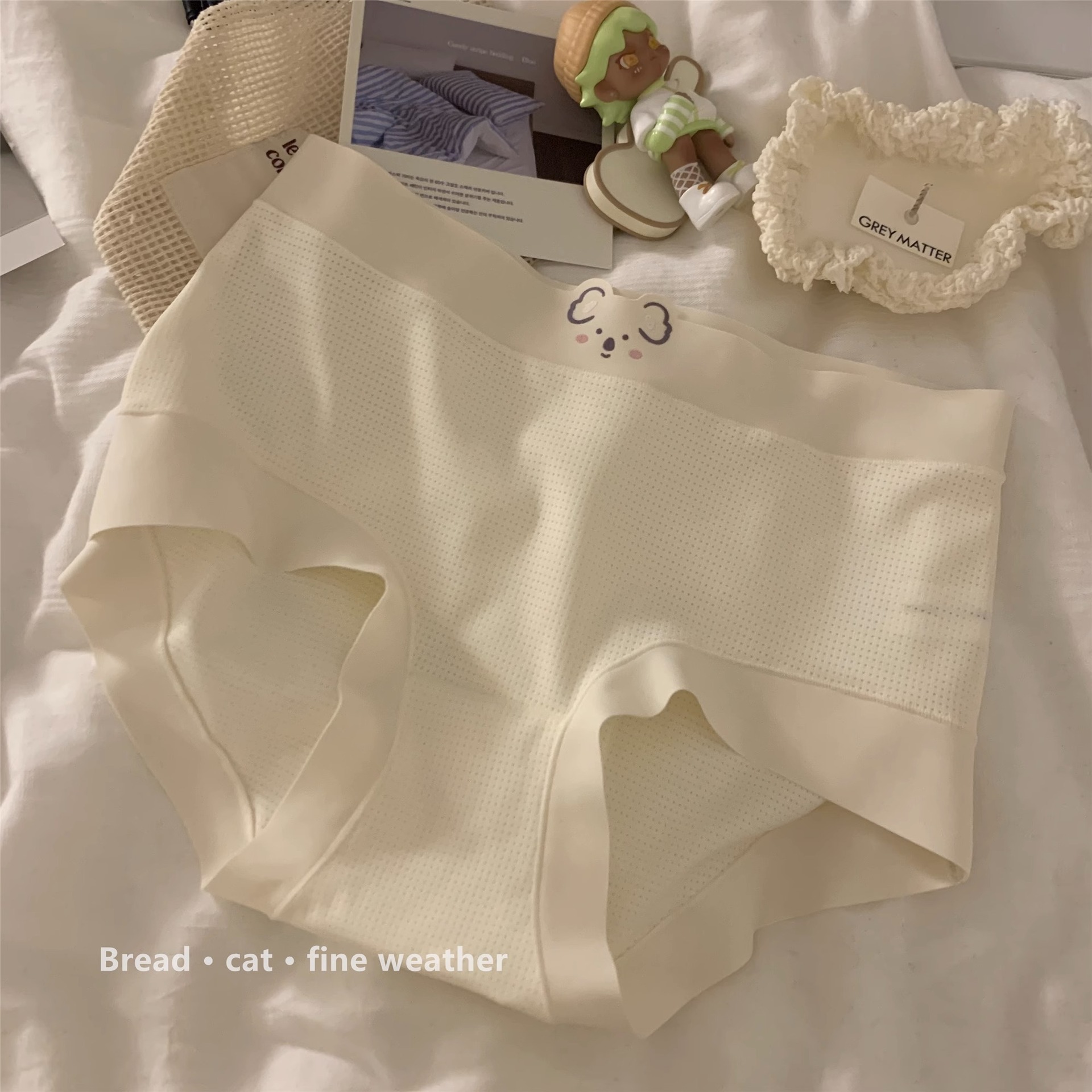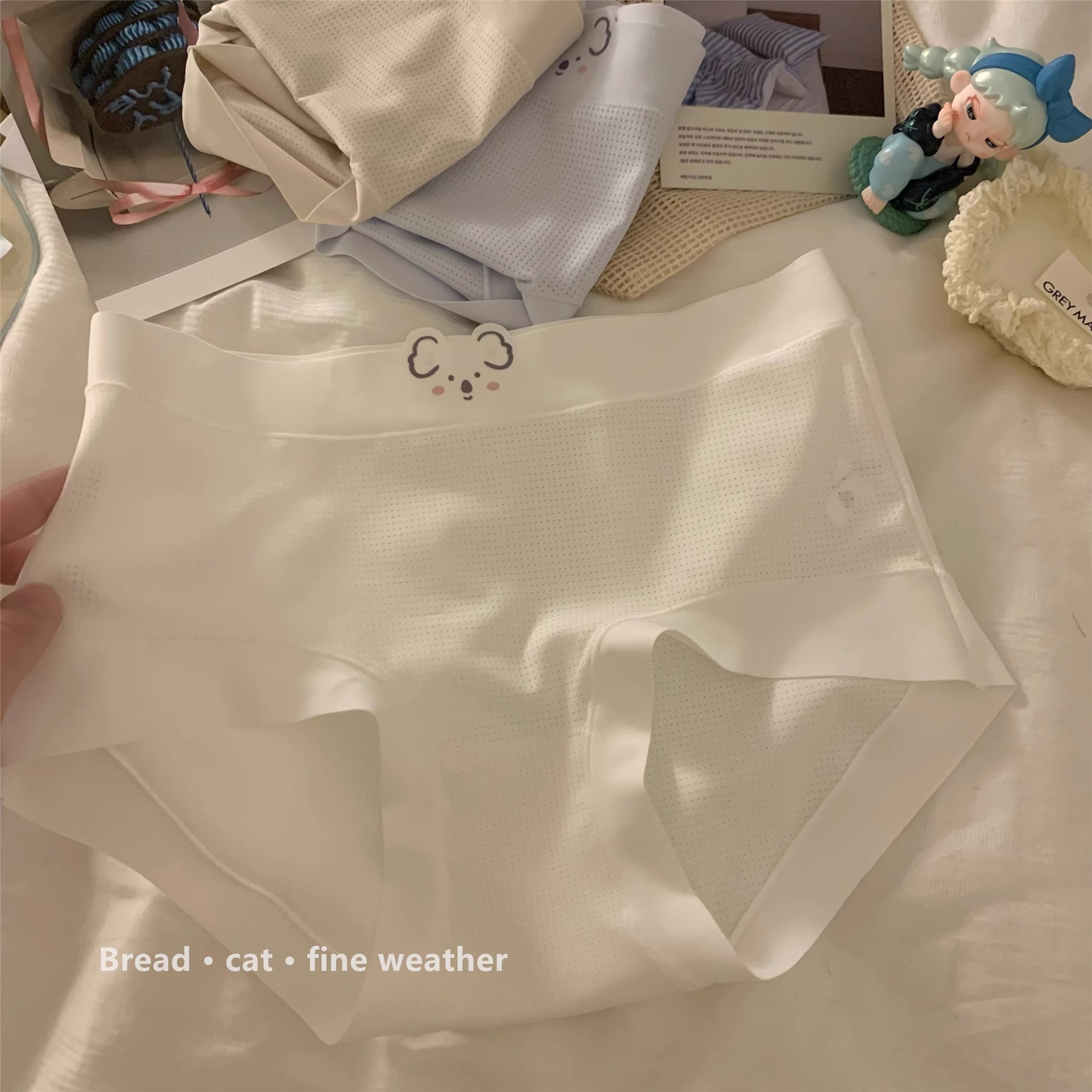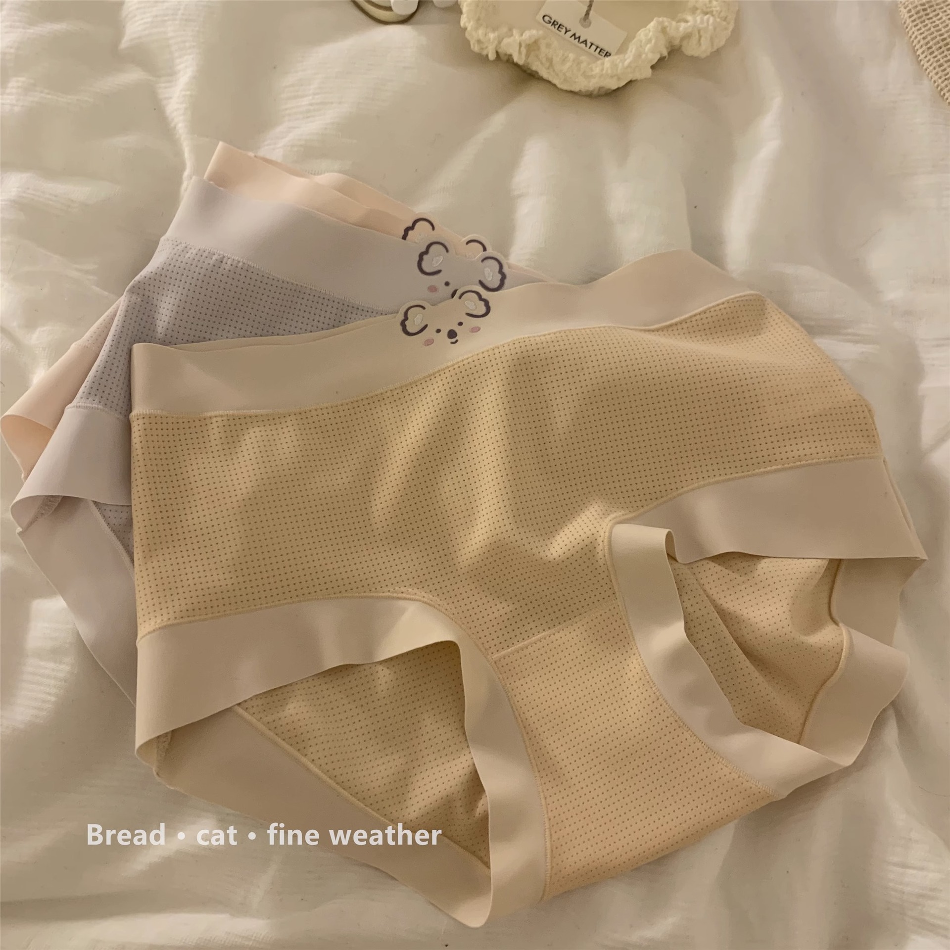 여름 얇은 어린 소녀의 플러스 사이즈 중간 허리 순수한 욕망 속옷 여성의 순수한면 항균 Crotch 추적없는 얼음 실크 삼각형 반바지