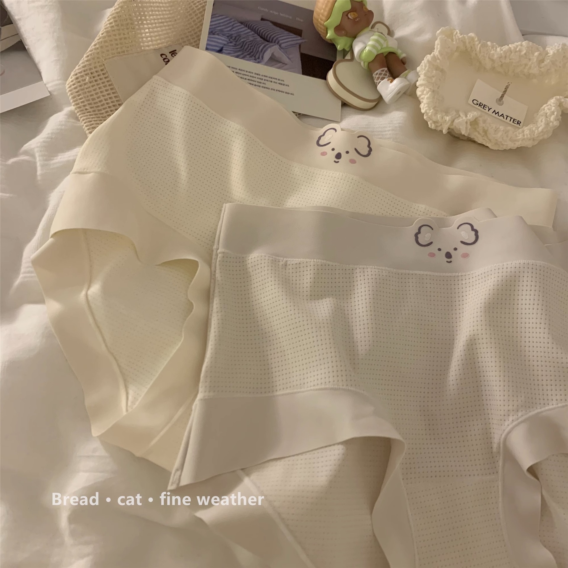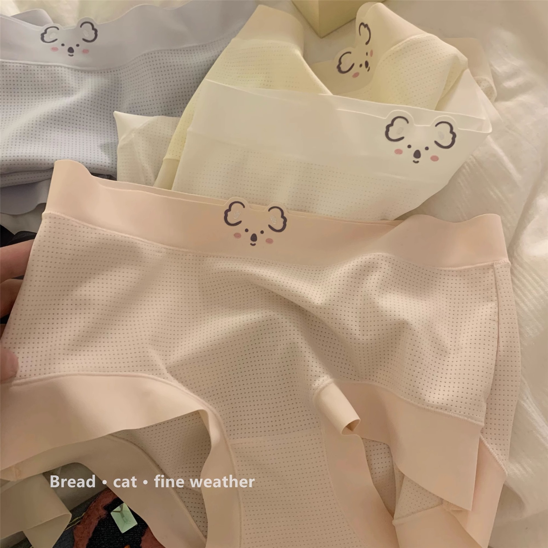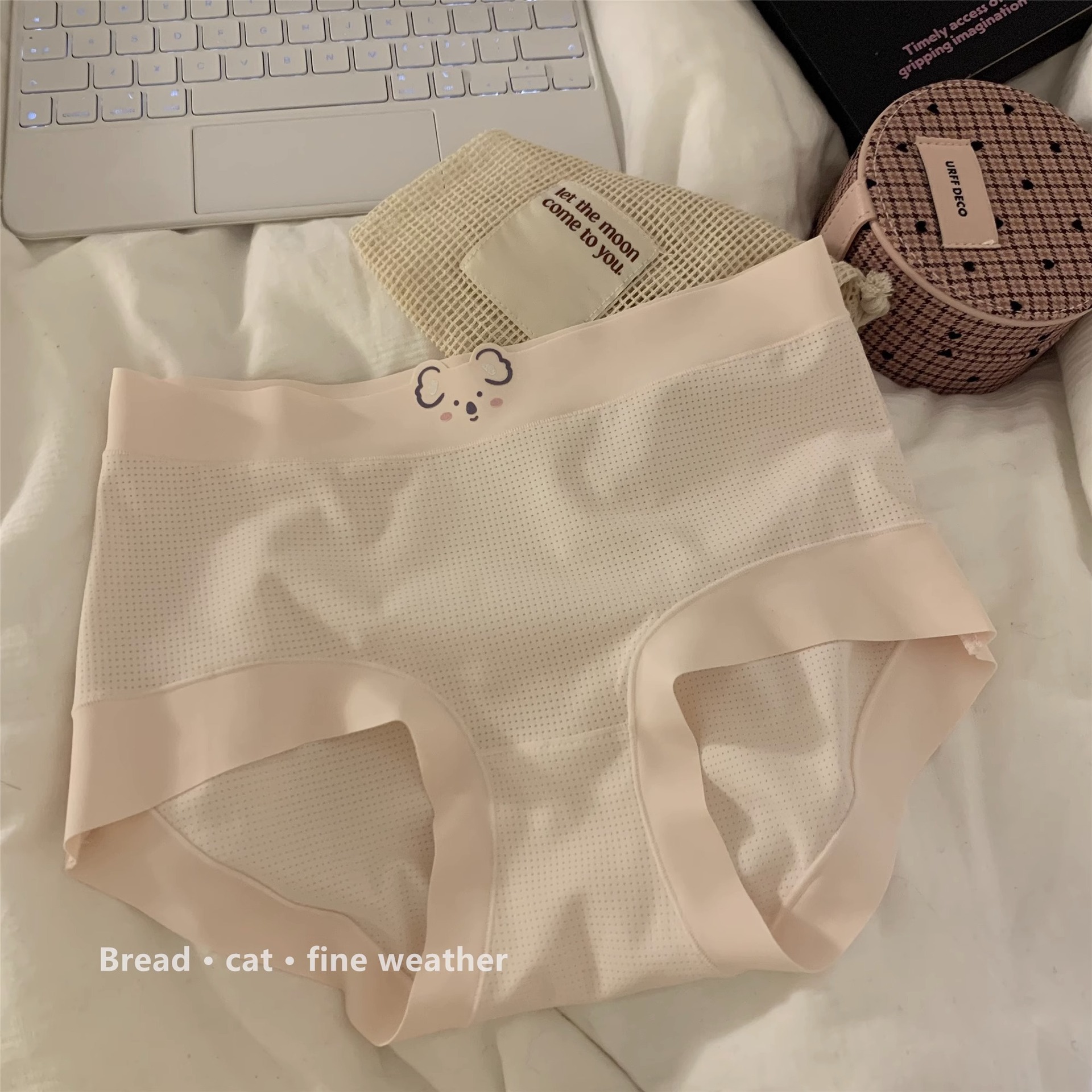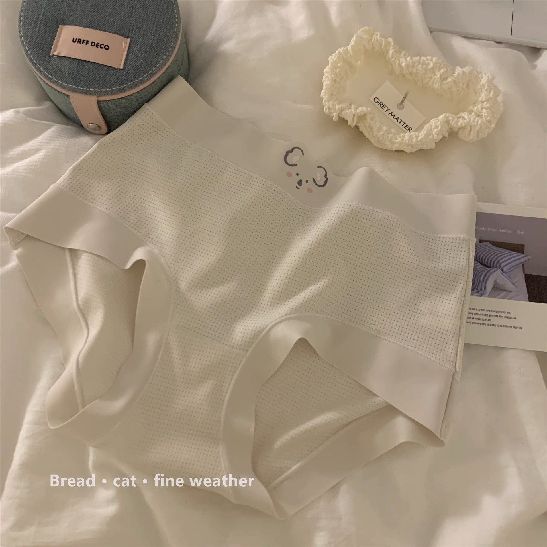 여름 얇은 어린 소녀의 플러스 사이즈 중간 허리 순수한 욕망 속옷 여성의 순수한면 항균 Crotch 추적없는 얼음 실크 삼각형 반바지