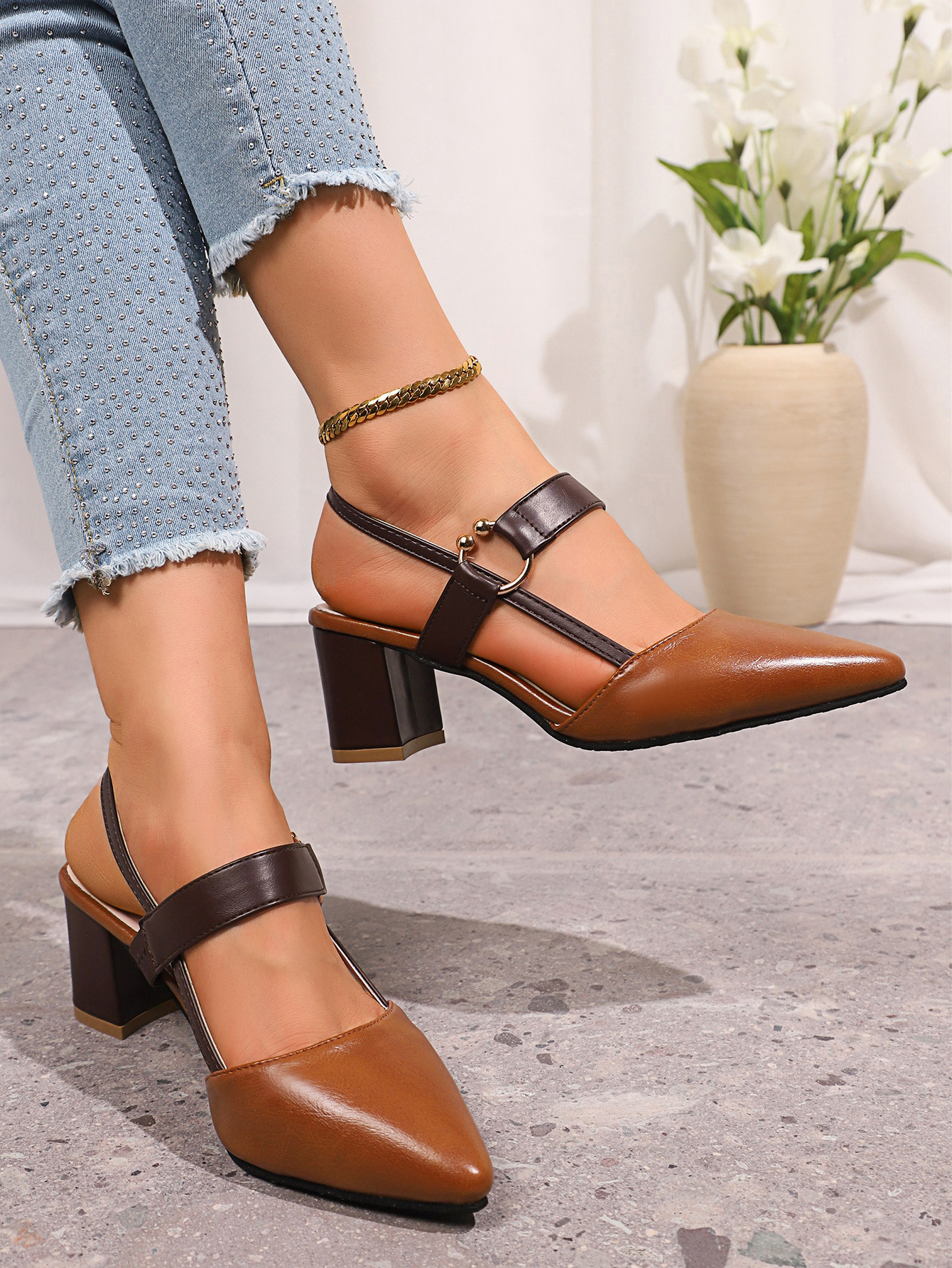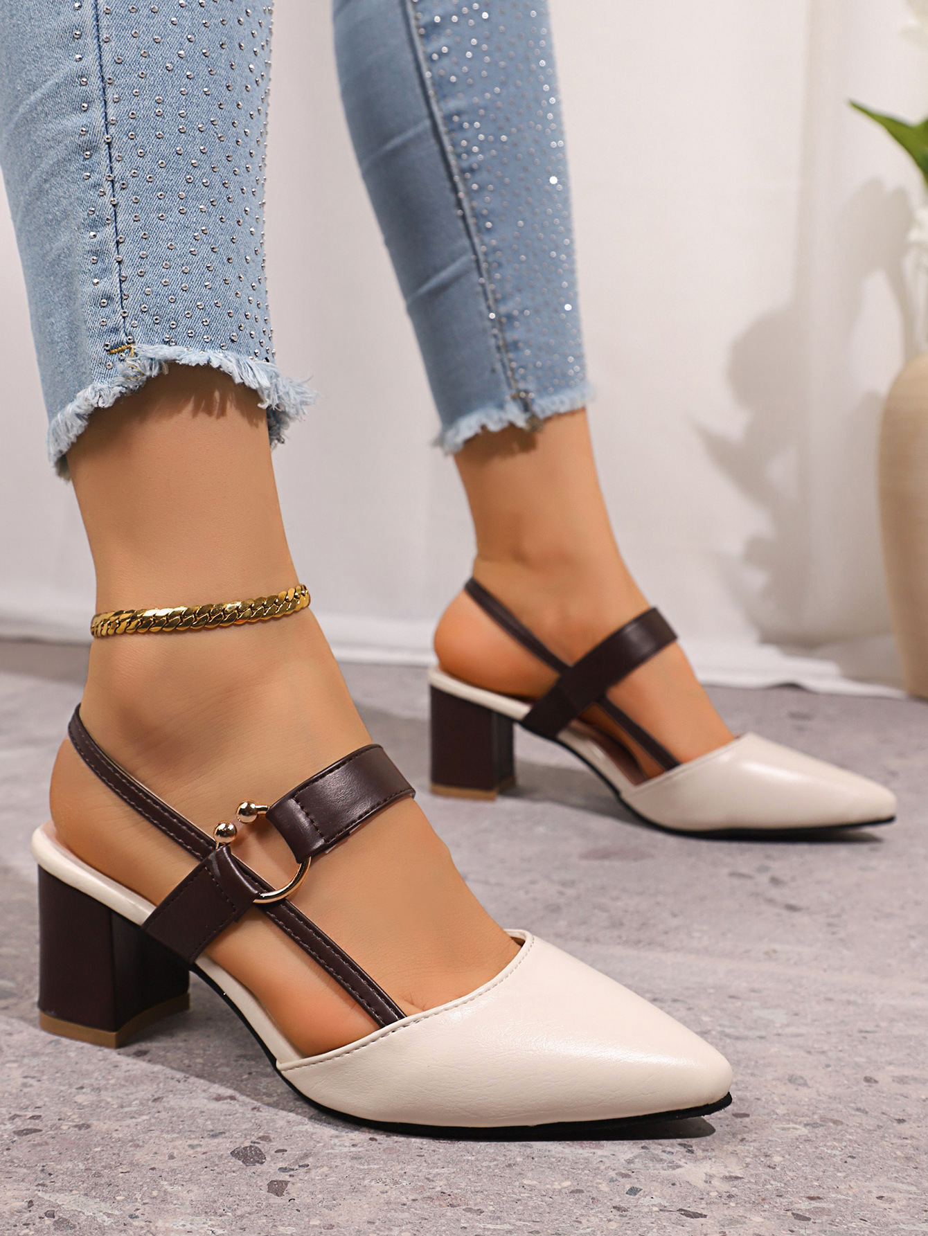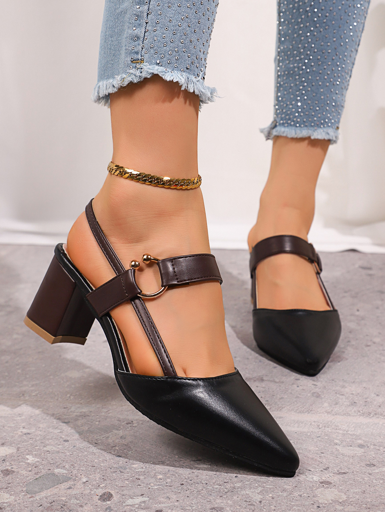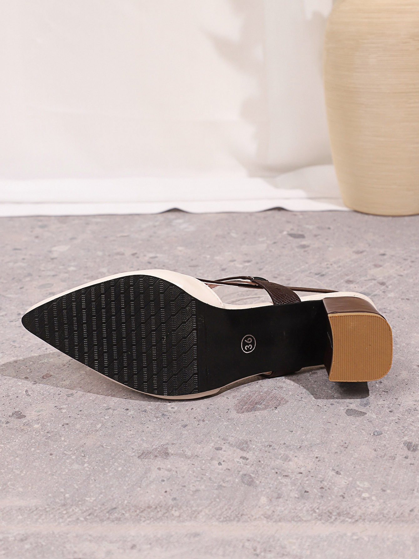 2025 봄 여름 신상 여성용 신발, 뾰족한 발가락, 두꺼운 굽, 발가락 여성용 신발, 미드 힐, 원라인 버클 하이힐, 중공 여성용 샌들