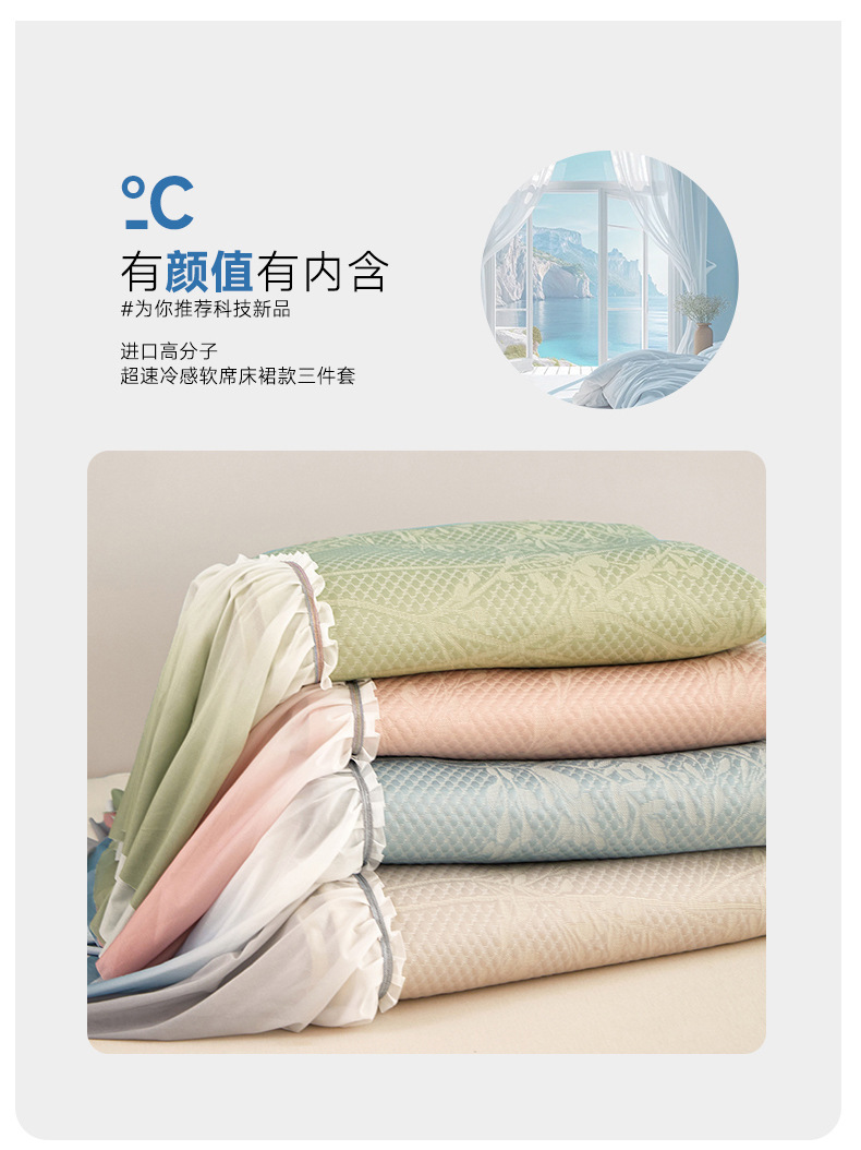 하이 엔드 패션 공주 바람 얼음 완두콩 매트 3 조각 여름 침대 치마 차가운 얼음 실크 매트 세탁 가능한 여름