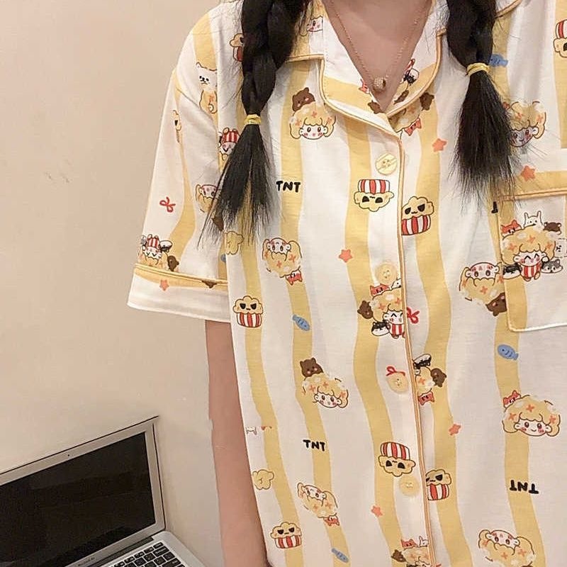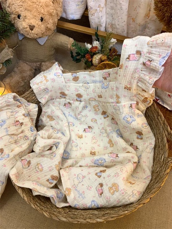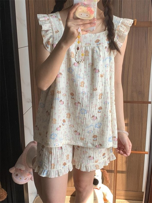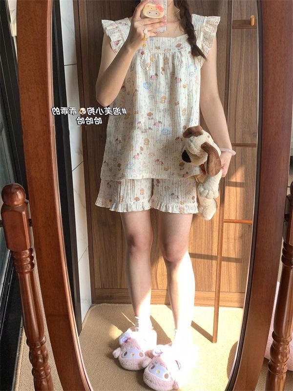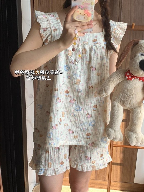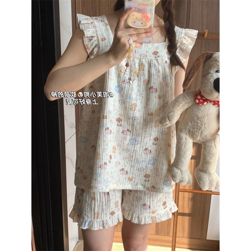 슬링 퍼프 강아지 파자마 여성 여름 새로운 Ins 스타일 귀여운 반팔 반바지 홈 의류 세트 의류스토어 가기