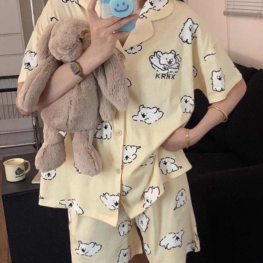 슬링 퍼프 강아지 파자마 여성 여름 새로운 Ins 스타일 귀여운 반팔 반바지 홈 의류 세트 의류