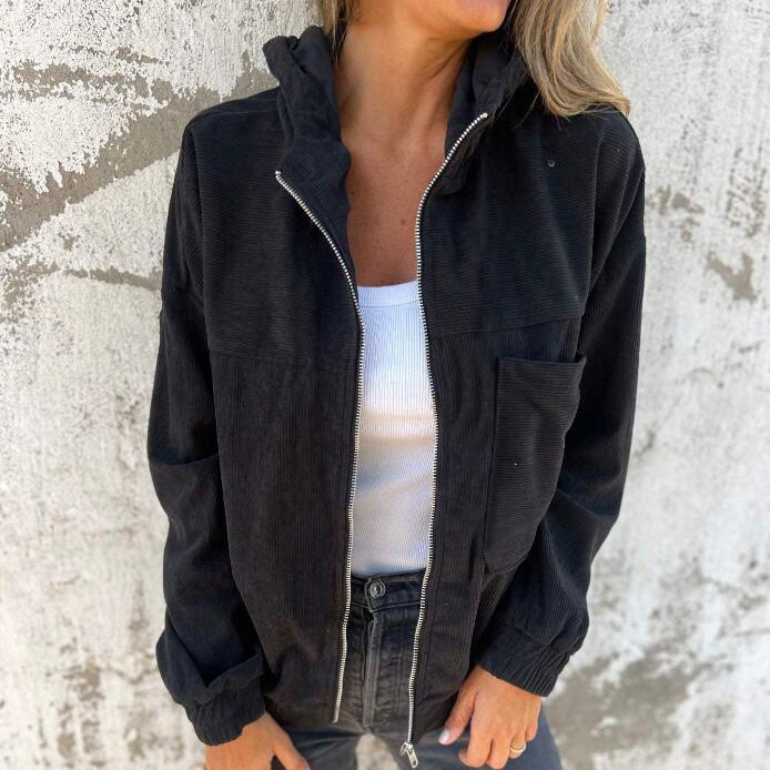 봄과 가을 여성을 위한 새로운 단색 재킷 유럽과 미국의 여성을 위한 심플한 스타일의 코듀로이 후드 재킷스토어 가기