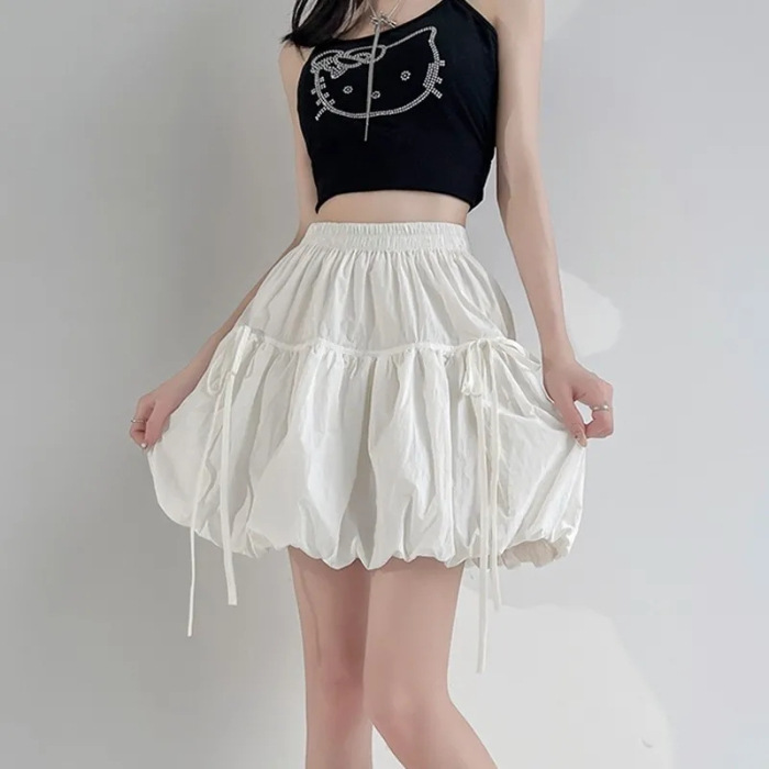 여성을위한 국경 간 흰색 꽃 레이스 업 스커트 봄, 여름 2025 새로운 스타일 작은 하이 웨이스트 슬림 a 라인 스커트