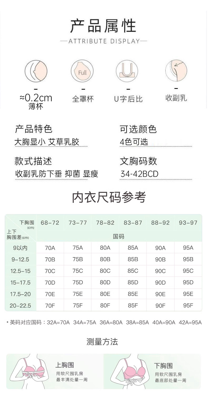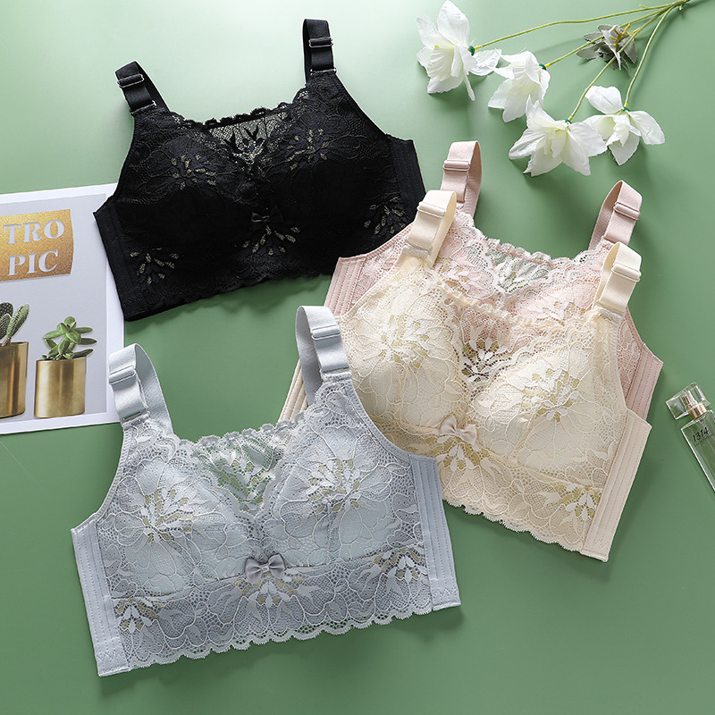 풀 컵 대형 가슴은 작은 속옷 여성 Parm Gathering 안티 처짐 모양 레이스 끈이없는 여름 얇은 브래지어스토어 가기