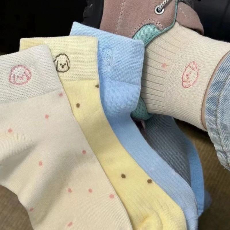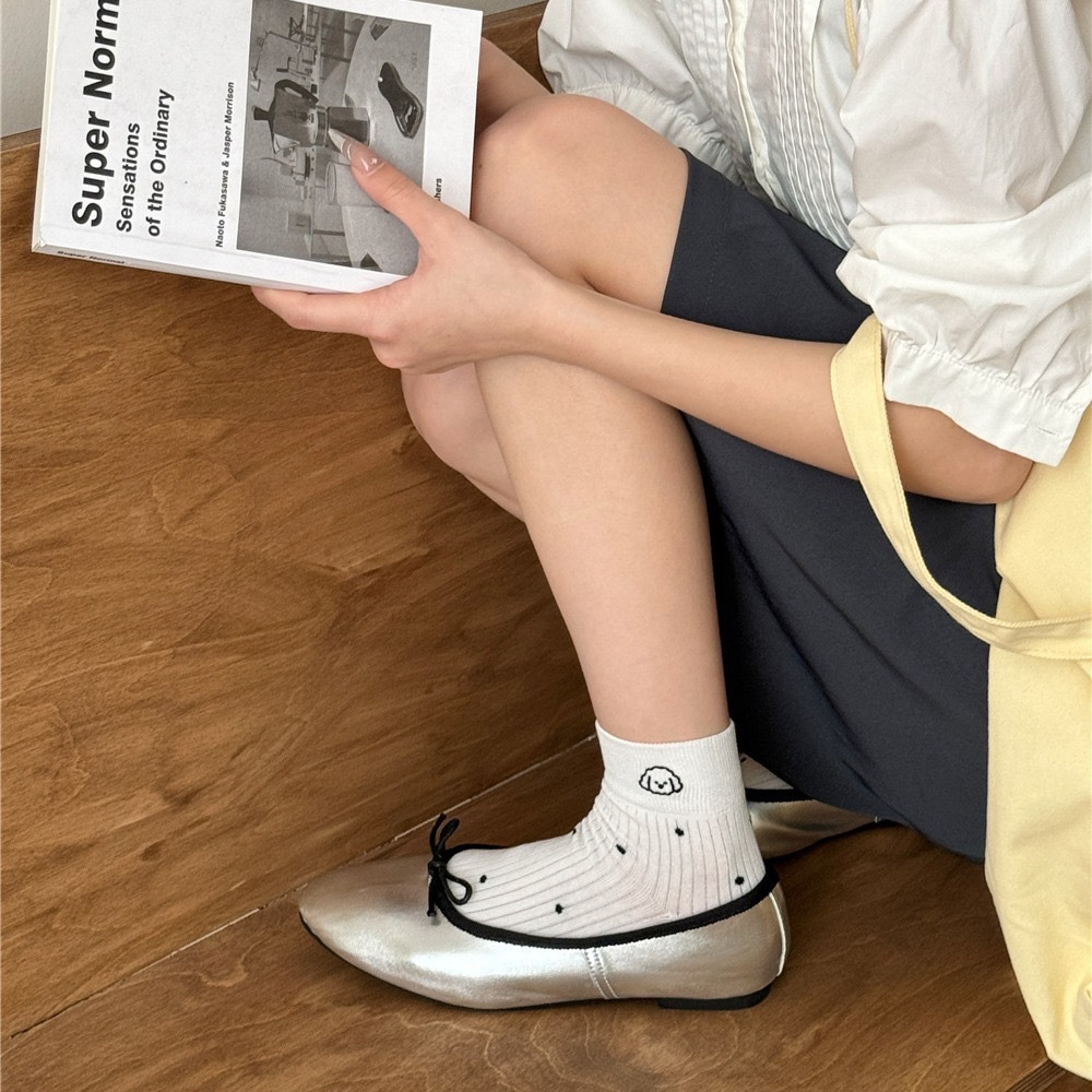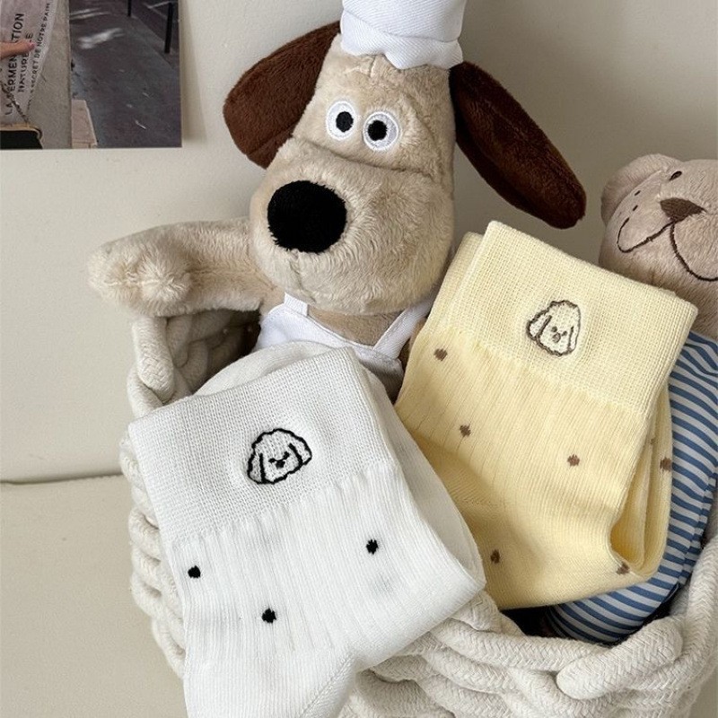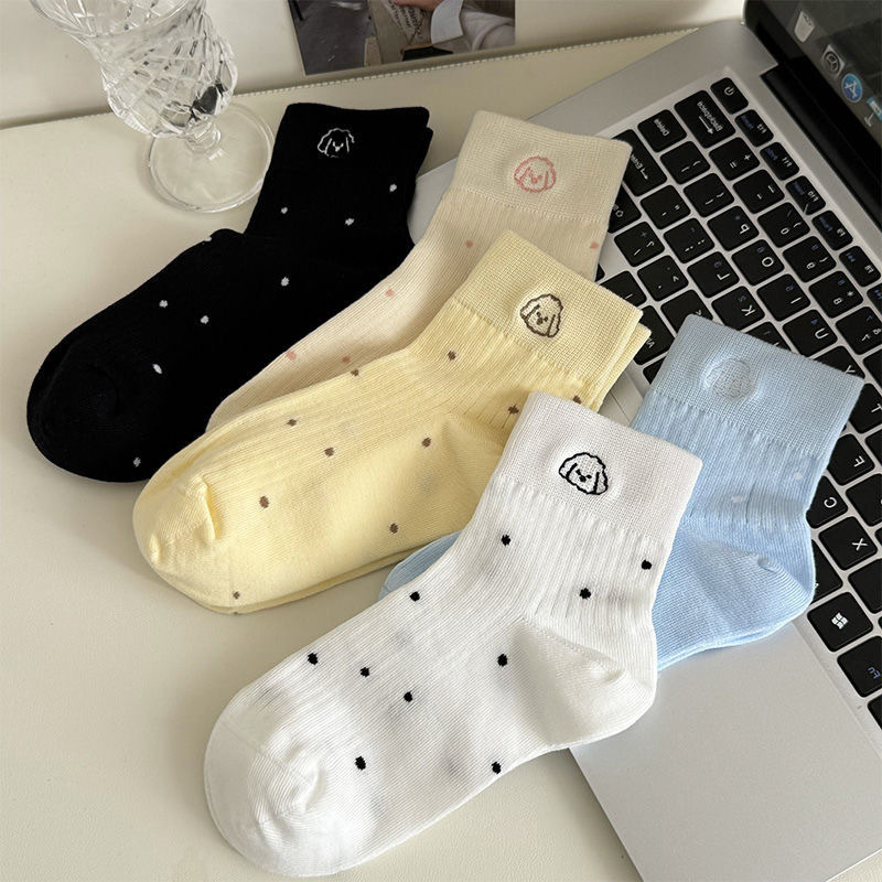 한국식 여성용 종아리 양말, 봄 여름 도트무늬 강아지 양말, 여성용 대학 스타일 도트무늬 통기성 스타킹, 인터넷 연예인 트렌디 양말스토어 가기