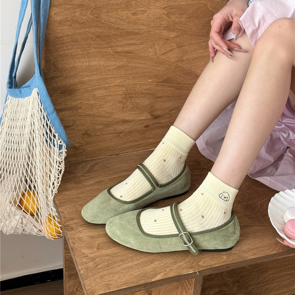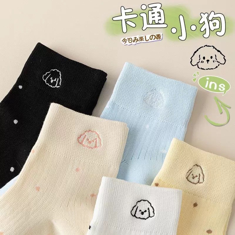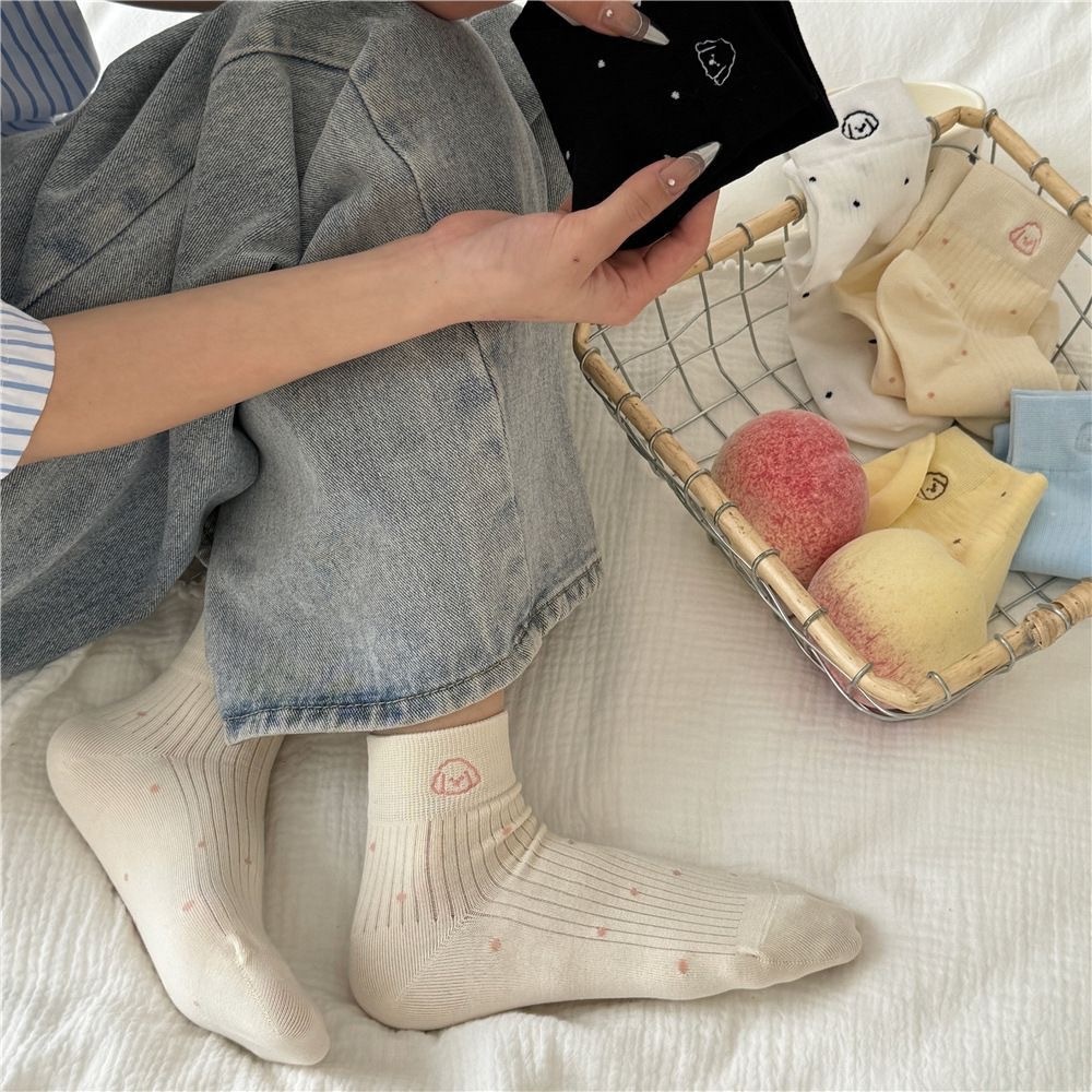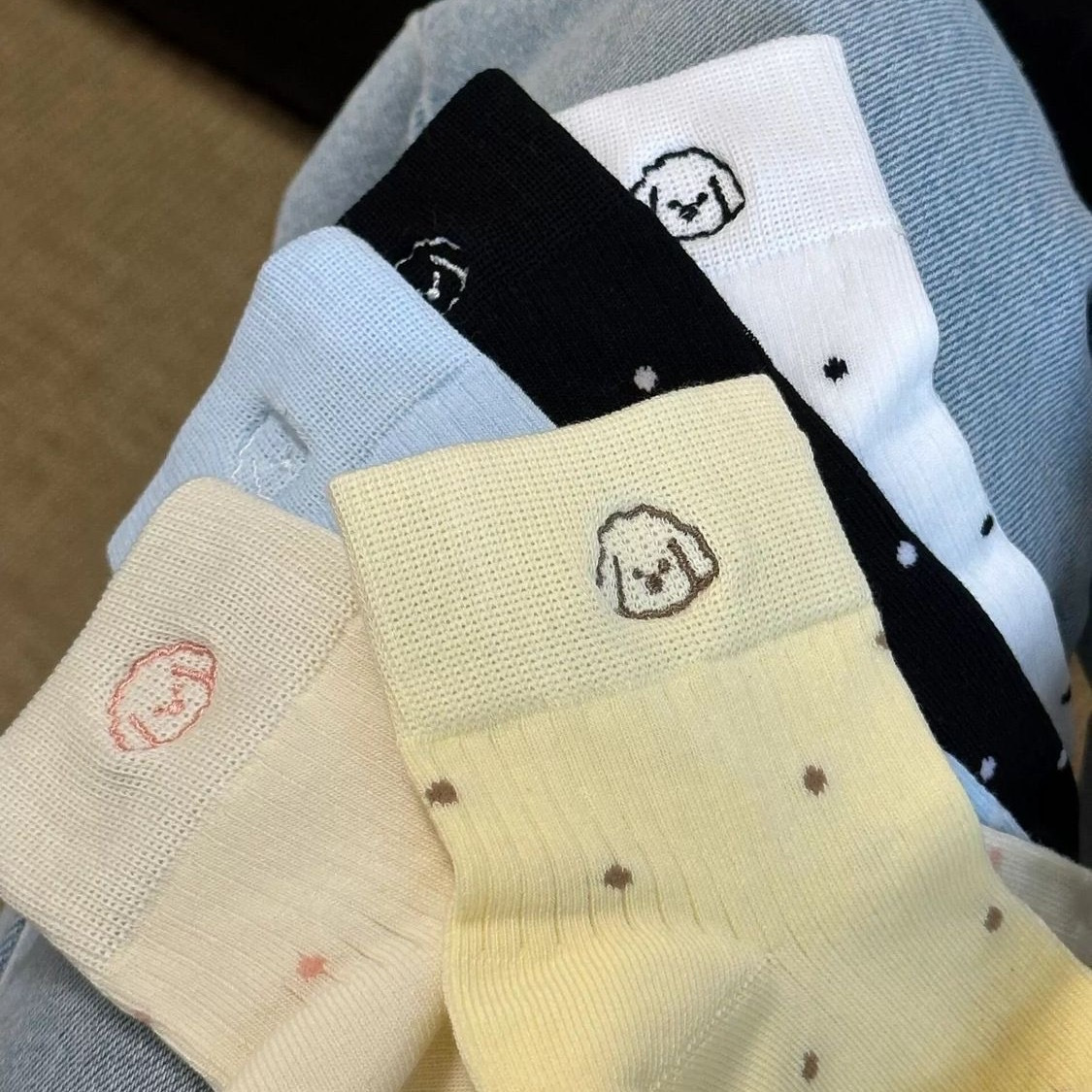 한국식 여성용 종아리 양말, 봄 여름 도트무늬 강아지 양말, 여성용 대학 스타일 도트무늬 통기성 스타킹, 인터넷 연예인 트렌디 양말스토어 가기
