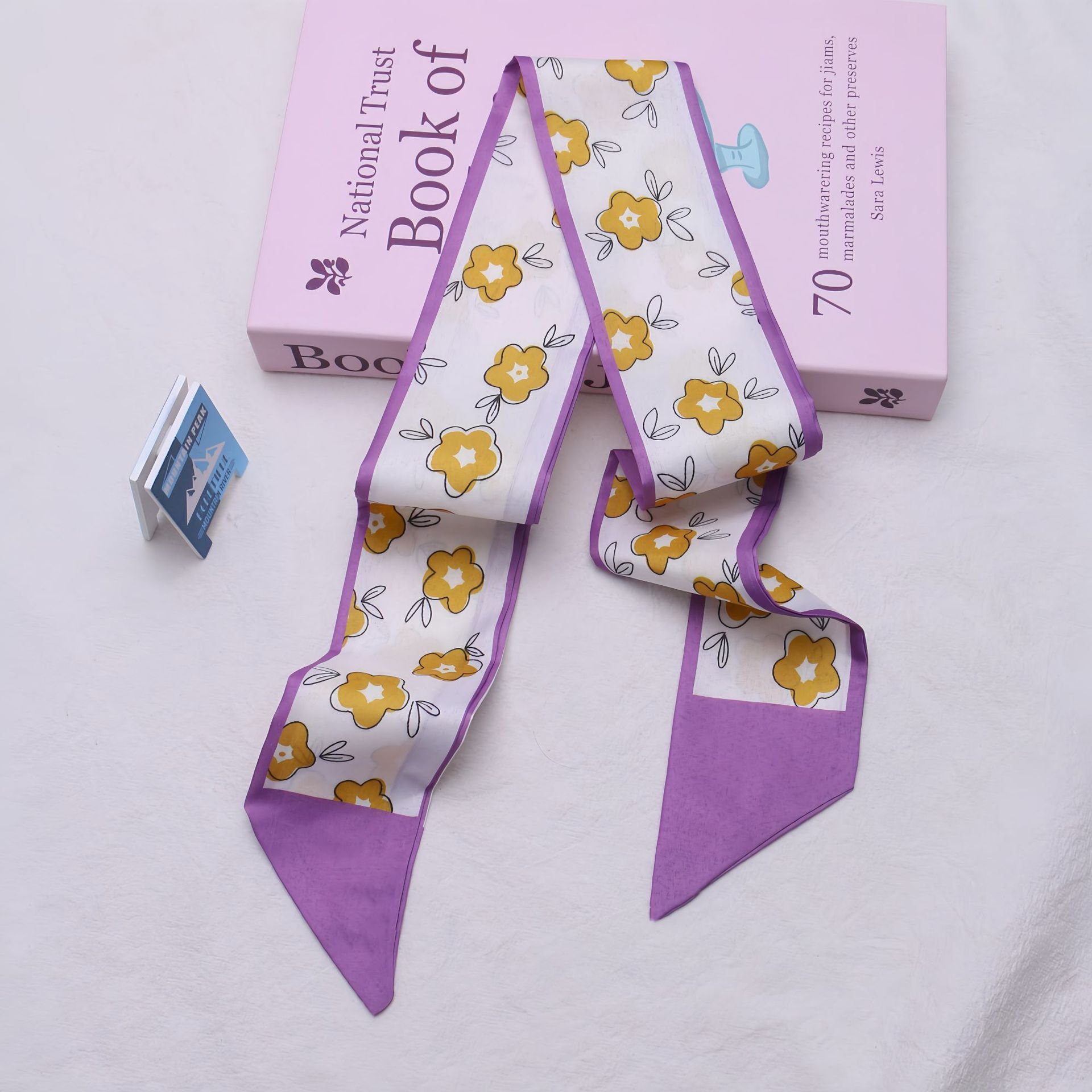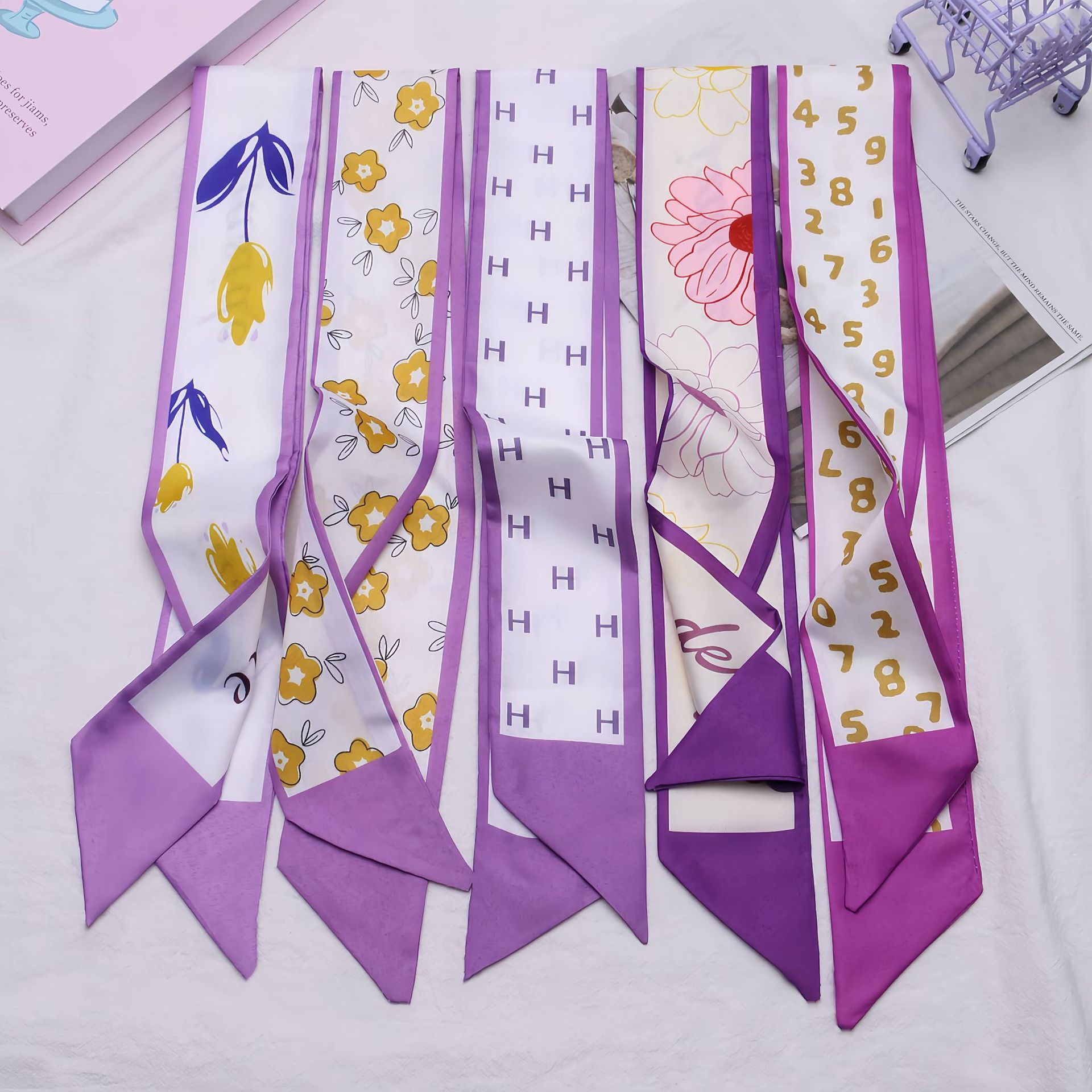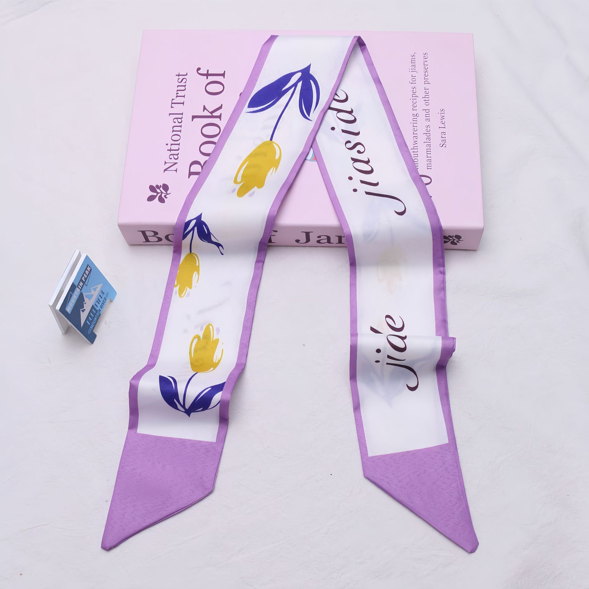 한국식 보라색 긴 실크 스카프, 분위기 있는 머리끈, 리본, 다용도 스카프, 머리띠 장식