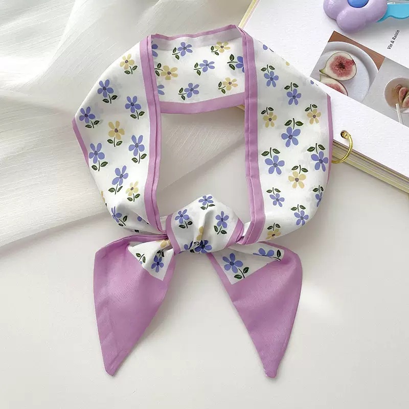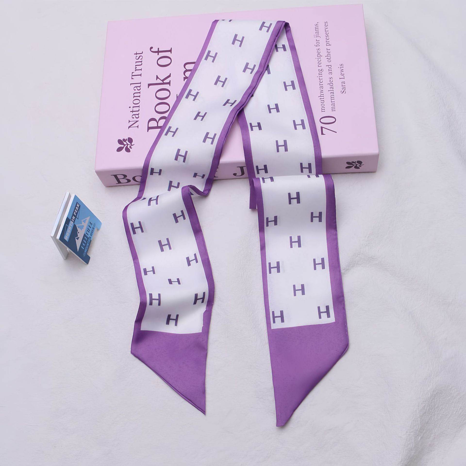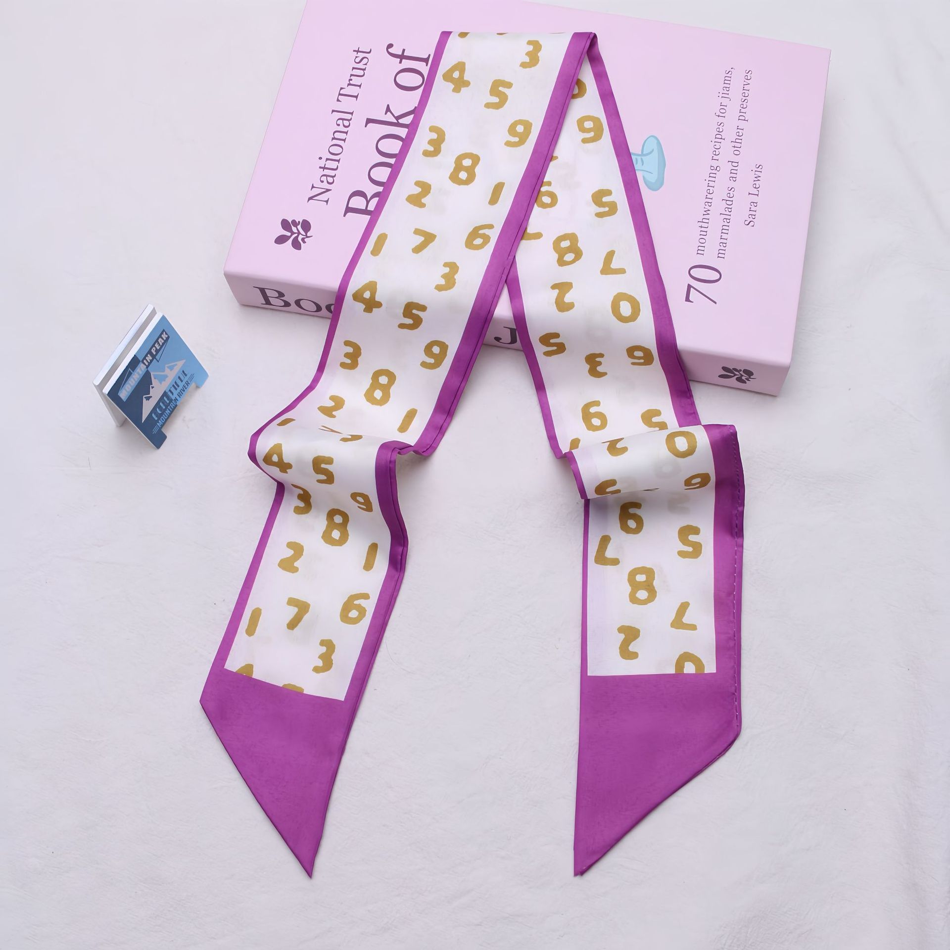 한국식 보라색 긴 실크 스카프, 분위기 있는 머리끈, 리본, 다용도 스카프, 머리띠 장식