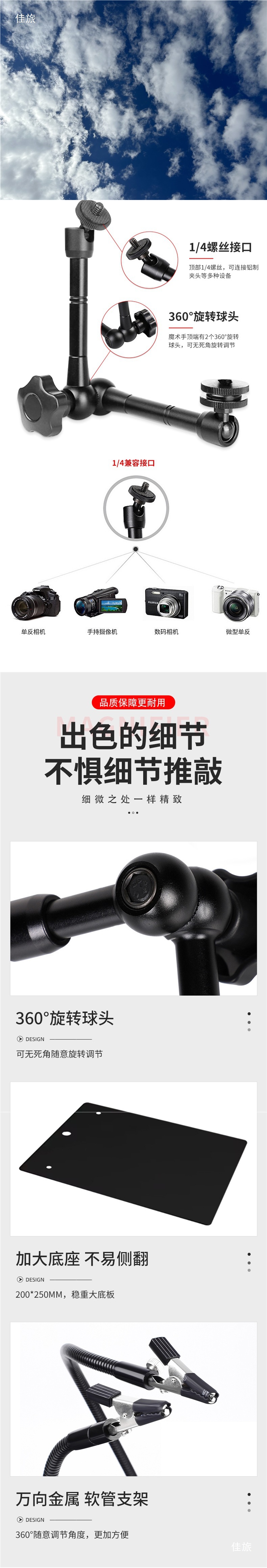 • 확장된 브래킷 암 [안정적인 베이스 플레이트] 4 Xialin 자기 기둥