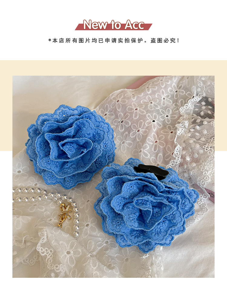 블루 로즈 레이스 헤어핀 여성용 머리 반 넥타이 헤어 그랩 클립 기질 상어 클립 고급 센스 헤어핀 헤드웨어스토어 가기