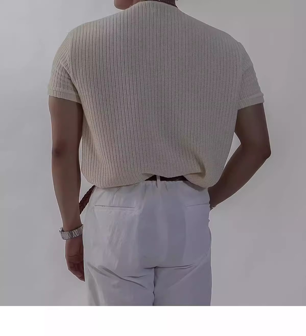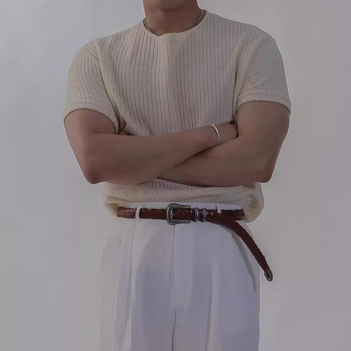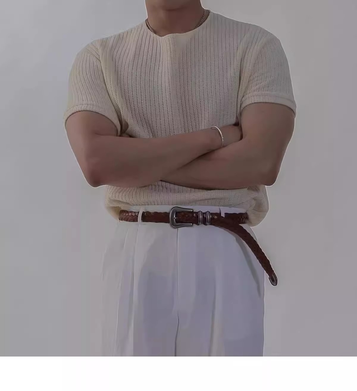 캐주얼 니트 반팔 남성 영국 복고풍 가볍고 성숙한 스타일 중공 얼음 실크 통기성 슬림 티셔츠 탑 바닥 셔츠스토어 가기