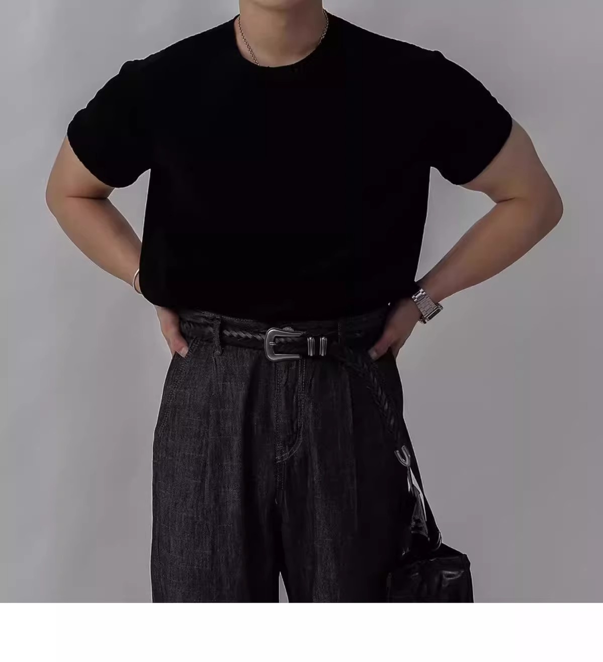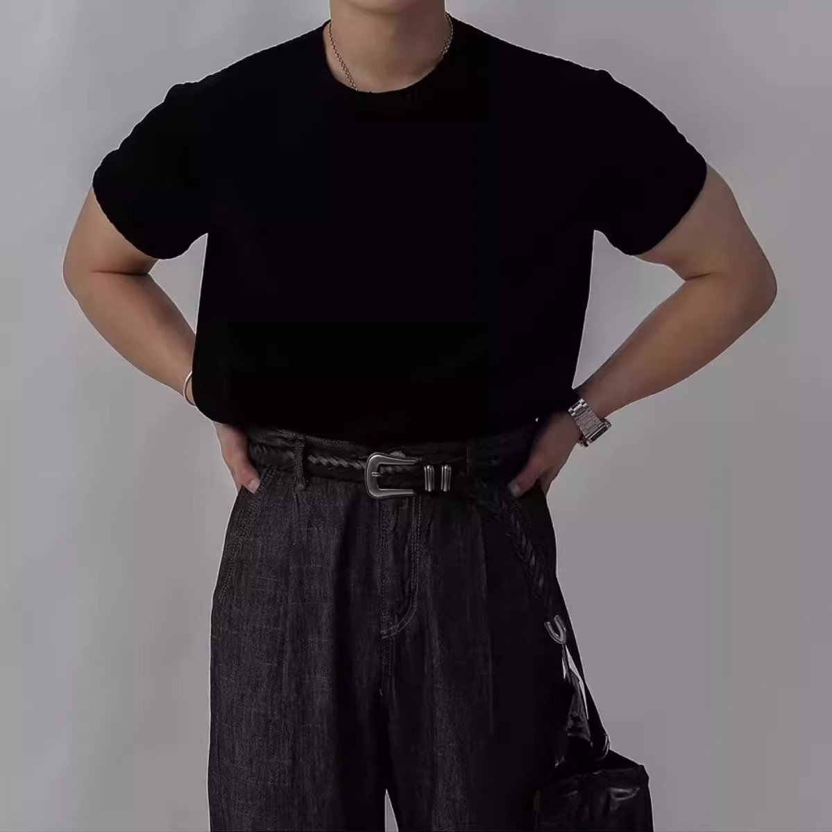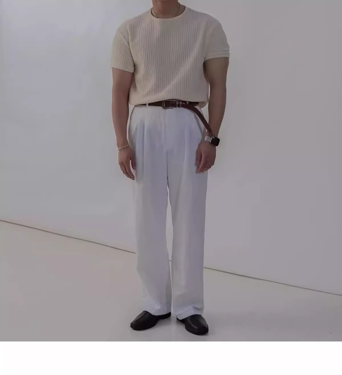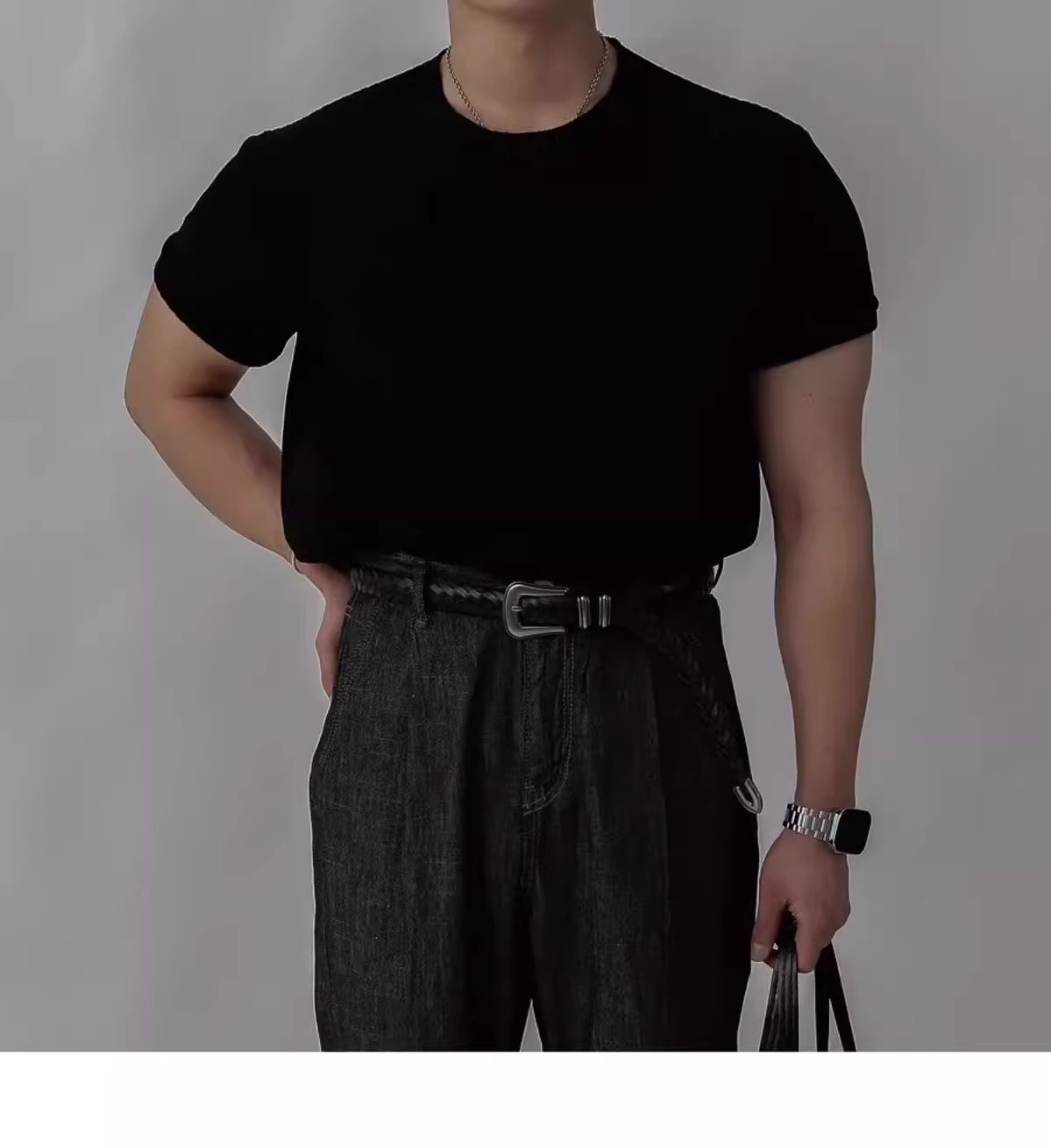 캐주얼 니트 반팔 남성 영국 복고풍 가볍고 성숙한 스타일 중공 얼음 실크 통기성 슬림 티셔츠 탑 바닥 셔츠스토어 가기